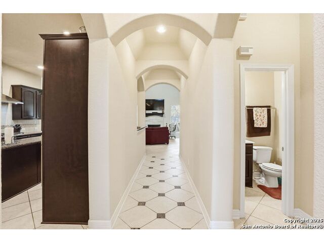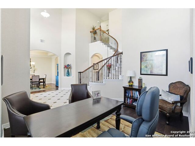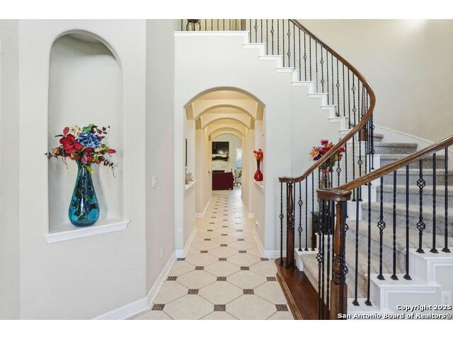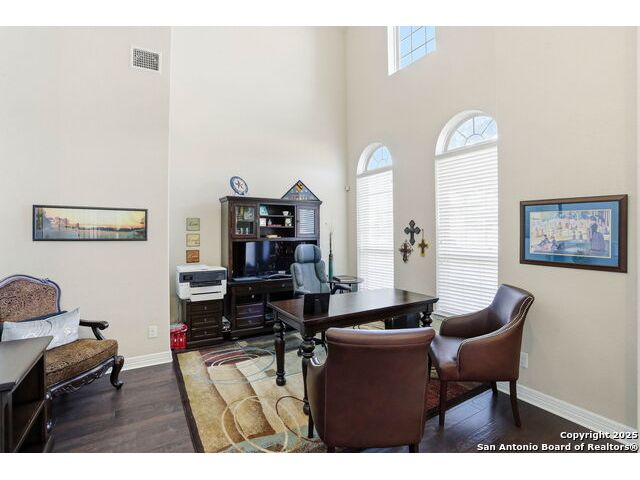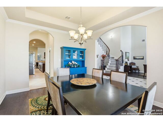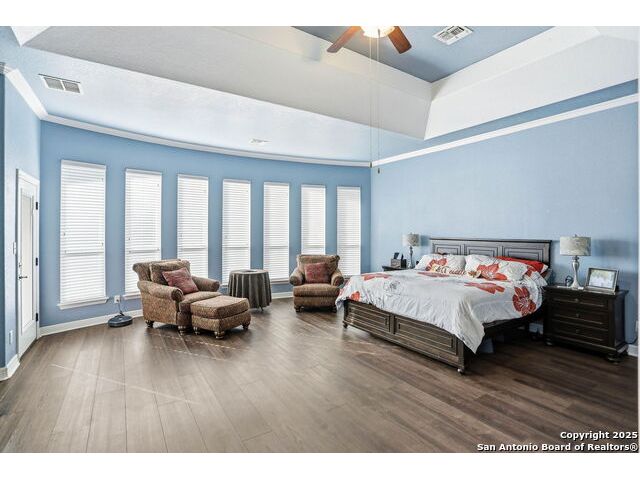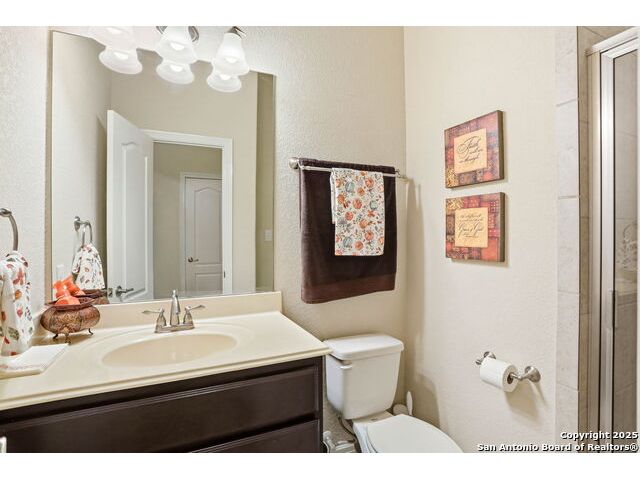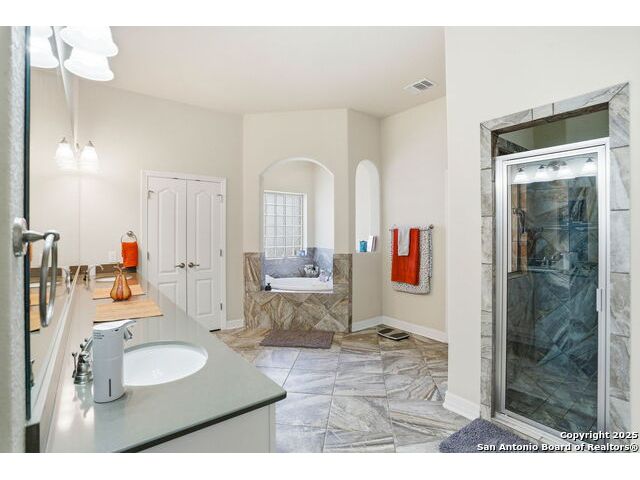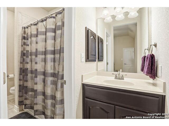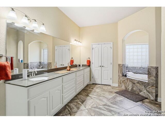 Welcome to 113 Misty Dawn, The Largest Single-Family Residence On The Market in Castroville, TX. A magnificent 4,880 sq ft estate, nestled in the serene and sought-after Potranco Ranch community of Castroville, TX. This exquisite 5-bedroom, 4.5-bathroom residence, set on a sprawling 0.69-acre lot, offers the perfect blend of luxury, space, and Texas Hill Country charm-ideal for families seeking room to grow, entertain, and unwind just minutes from San Antonio's vibrant amenities. Step through the grand double doors into a light-filled foyer boasting soaring ceilings, elegant arched doorways, downstairs primary and guest bedroom, and a dramatic curved wrought-iron staircase that sets the tone for sophisticated living. The open-concept design seamlessly connects the gourmet kitchen-featuring rich dark wood cabinetry, gleaming granite countertops, a large center island, stainless steel appliances, and a gas cooktop-to the inviting family room with its cozy stone fireplace and abundant natural light from oversized windows leading to the expansive downstairs primary suite. Whether hosting holiday gatherings or casual brunches, the adjacent formal dining room and breakfast nook provide versatile spaces for every occasion. Upstairs, discover a private retreat, complete with spa-like en-suite bath, while four additional generously sized bedrooms (each with access to well-appointed baths) offer comfort and privacy for family or guests. The home boasts a dedicated theatre room, perfect for immersive movie nights and family entertainment.. Outside, the brick exterior exudes timeless curb appeal, complemented by a covered entry, balcony overlook, and a three-car garage for ample storage. The oversized lot invites outdoor living with lush landscaping, mature trees, and plenty of room for a pool, garden, or playset-embracing the peaceful, park-like setting that defines Potranco Ranch. The property is distinguished by its elegant stone front fence paired with a wood privacy fence, a rare feature in Potranco Ranch that enhances curb appeal while offering exceptional seclusion and style. Conveniently located near major highways, top-rated schools, shopping, and dining, this home combines small-town tranquility with urban accessibility. Don't miss your chance to own this move-in-ready masterpiece-schedule your private tour today and experience the lifestyle you've been dreaming of!