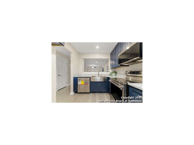 Welcome to this beautifully remodeled condo located in a prime San Antonio community. Nearly every detail of this home has been thoughtfully upgraded with high-end finishes and modern design. The kitchen and bathrooms showcase all-wood, soft-close blue cabinets, elegant quartz countertops, and premium trim-out details throughout the home. Brand-new stainless-steel appliances from Lowe's-never used and under manufacturer warranty-add a sleek, contemporary touch. Both master suites feature custom California Closets, while every bathroom has been fully updated with new toilets, fixtures, and finishes. The home includes a new water heater, completely updated electrical and plumbing, new windows and doors, and fresh knockdown texture throughout. Enjoy new interior and exterior paint and luxury vinyl plank flooring with extra padding on both levels for superior comfort and durability. Outside, the zero-scape backyard provides low-maintenance outdoor living, and the A/C has been recently serviced for year-round efficiency. This condo truly offers the look and feel of a brand-new home-perfect for anyone seeking a move-in-ready property in the heart of San Antonio.