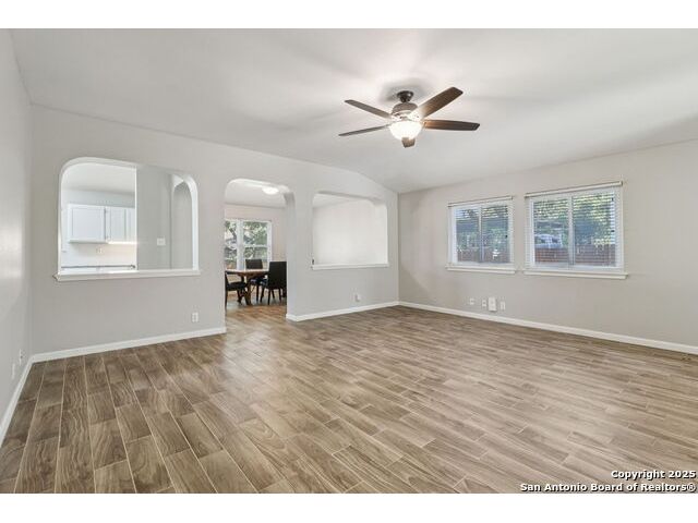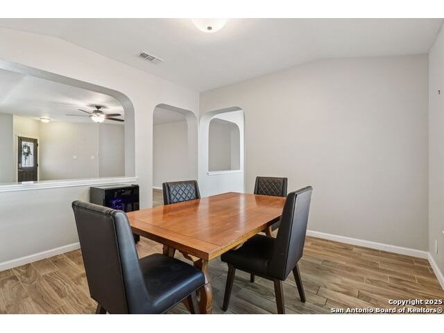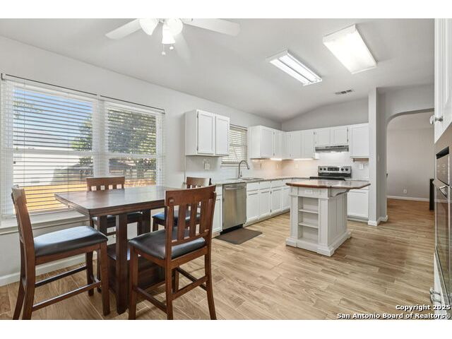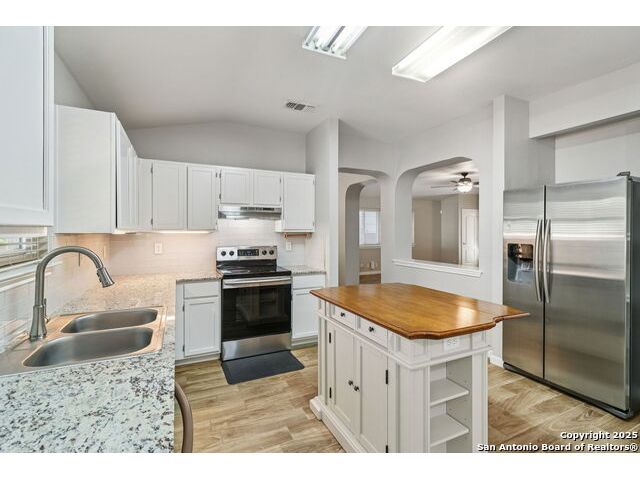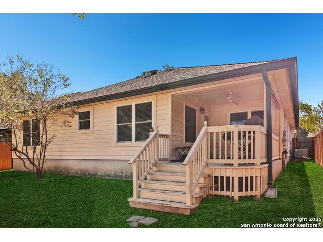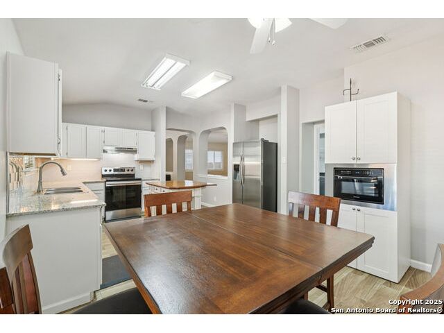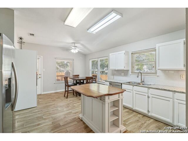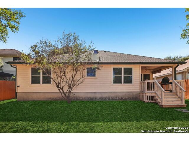 Move-in ready single-story home in the desirable Pheasant Ridge community! This 3-bedroom, 2-bath residence offers 1,948 sq ft of comfortable living space on a well-sized 0.15-acre lot. Built in 1999 and recently updated, the property features a spacious open floor plan with fresh flooring throughout, neutral paint tones, and abundant natural light.The kitchen showcases updated finishes including sleek white cabinetry, granite countertops, subway tile backsplash, and stainless-steel appliances - plus a large island with additional storage and breakfast bar seating. Adjacent dining area overlooks the backyard and opens to the living room for easy entertaining.The private primary suite includes a fully renovated bath with a dual-sink vanity, marble countertop, and an oversized walk-in shower with bench seating and modern tile surround. Secondary bedrooms offer generous closet space and share a well-maintained full bath.Enjoy outdoor living under the covered patio with ceiling fan and space for grilling or relaxing. The fenced backyard provides mature trees and room to customize for gardening or play. Roof shingles were replaced in 2022, offering peace of mind for years to come.Additional highlights include a dedicated laundry room, attached 2-car garage, and energy-efficient double-pane windows. Excellent location within the North East ISD, near Stahl Elementary (~0.4 mi), Harris Middle (~0.7 mi), and Madison High (~0.2 mi). Convenient access to Loop 1604, I-35, and US-281, with shopping at stores including HEB, dining, and parks such as McAllister Park and Friesenhahn Park just minutes away.This home offers the best of single-level living, with thoughtful updates and proximity to everyday amenities. Schedule your private showing today!