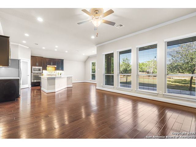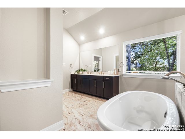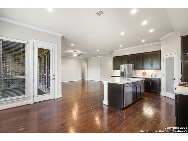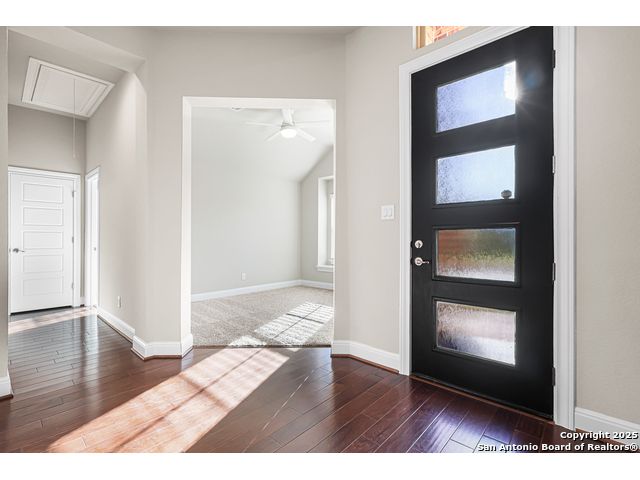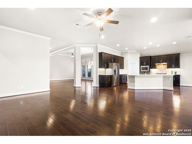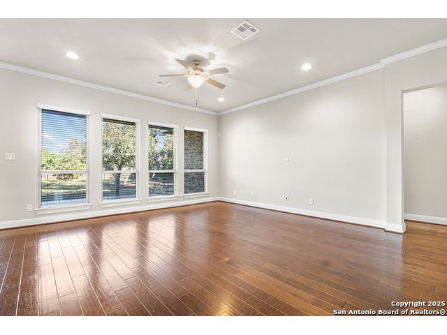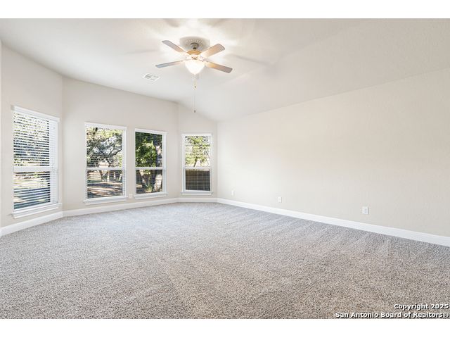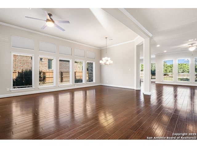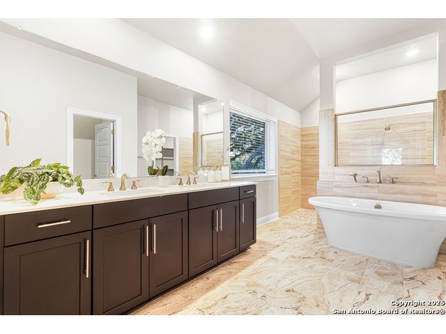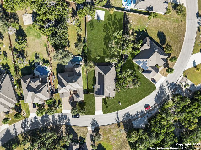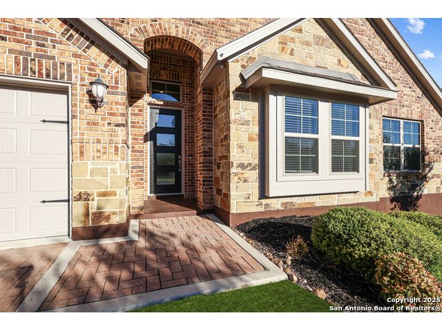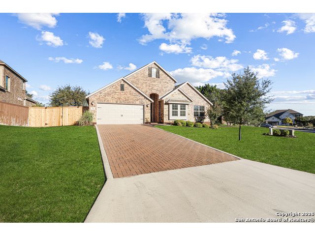 Welcome to your dream home in the desirable gated community of Valencia Park Enclave! This stunning 4-bedroom, 3-bath residence sits on a spacious half-acre homesite, offering the perfect blend of elegance, privacy, and comfort. Step inside to find rich wood flooring, a dedicated study, and an open-concept layout ideal for entertaining. The gourmet kitchen is the heart of the home-featuring designer cabinetry, a huge island with undermount sink, Silestone countertops, built-in stainless steel appliances, and a beautiful custom backsplash. The inviting family room flows seamlessly to a covered patio, perfect for relaxing evenings or weekend gatherings overlooking your private, fenced-in backyard. The luxurious primary suite includes a bay window and a spa-inspired bath with a stand-alone soaking tub, an expansive walk-in shower, and dual vanities. This home features a full solar panel system paired with an Enphase Encharge Battery Backup, offering exceptional energy efficiency and reliable whole-home support. The solar panels help significantly reduce monthly utility costs, while the battery stores excess energy to power the home during peak usage or unexpected outages. A modern, eco-friendly upgrade that provides long-term savings, peace of mind, and truly sustainable living. Located in the desirable Valencia Park Enclave off Borgfeld & Blanco, you'll enjoy easy access to Highway 281, local amenities, top-rated schools, and scenic parks. Don't miss the chance to make this your dream home-schedule a showing today!