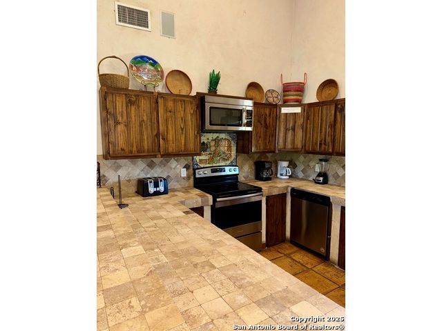 Los Agaves is a custom-built 5-bed/5.5-bath hacienda-style home located in the Tierra Linda subdivision just off of River Road in Concan and comfortably sleeps up to 21 guests. It features five bedrooms each with their own bath and an additional 1/2 bath just off the kitchen. The living area with a beautiful wood burning fire place, kitchen, and dining area feature an open concept. Enjoy a night under the stars around the outdoor fire pit, or a daytime dip in the sparkling pool. Located close to House Pasture Cattle Company, the golf course, various Frio River access points, and Garner State Park, Los Agaves is what you've been looking for.