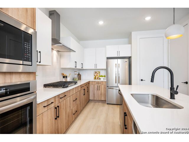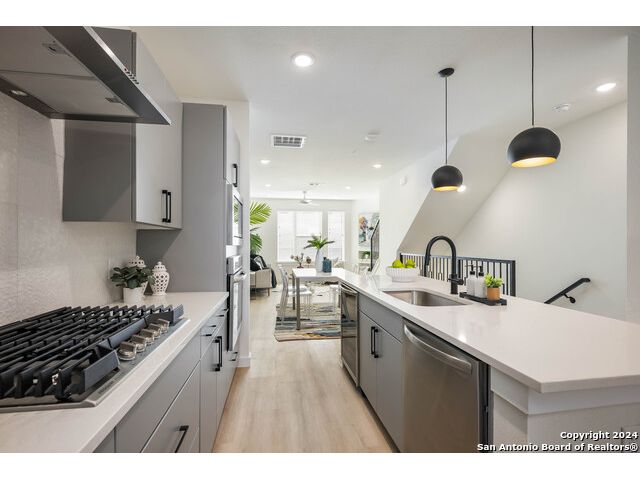 29 Units Sold/Under Contract! Introducing Grayson House, 48 new townhomes located just blocks from San Antonio's Historic Pearl District and close proximity to Downtown San Antonio and St. Mary's Strip. This exceptional new community features three and four-story townhomes showcasing sleek, thoughtful design, open layouts, modern finishes, and stunning city views for select units. Experience elegant features, including quartz countertops in the kitchen and bathrooms, a smart thermostat for optimal climate control, keypad entries for added security and convenience, and matte black hardware for a chic, modern aesthetic. Tile flooring throughout all bathrooms, attached one-car garages, and expansive walk-in closets with custom-built wood shelving add to the appeal. Enjoy the convenience of kitchen islands perfect for cooking and entertaining, a full-size front load laundry set, high ceilings that enhance the sense of space, a french door fridge, a 52-bottle wine fridge, a gas cooktop, a canopy vent hood, and a wall oven for gourmet cooking. Wood-style flooring throughout the living room, kitchen, and bedrooms completes the elegant design. Select floor plans also feature 36-inch soaking tubs, private yards, and balconies, adding an extra touch of comfort and outdoor living space. Experience the vibrant Pearl-area growth with new residential, commercial, and retail developments within walking distance. Grayson House offers a unique blend of convenience, and modern urban living. Make Grayson House your new home and be part of a dynamic, evolving, urban community.