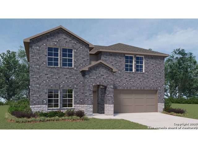 Introducing The Quincy, a two-story home featuring 4 bedrooms, 3 bathrooms, a dedicated study space and a 2-car garage in Brookstone Creek, a new home community located in San Antonio, TX. Here you will find a beautiful open-concept layout with 2698 square feet of funtional living space. Your kitchen, dining area and living room blend together seamlessly with plenty of room for everyday living as well as plenty of natural light from large windows throughout. Your chef's kitchen offers spacious quartz countertops, classic subway tile backsplash, stainless steel appliances and a natural gas cooking range. A large kitchen island with a deep single basin sink overlooks the dining area and living room. Just off the living room is the private main bedroom and ensuite bathroom which offers a spacious walk in closet, dual vanity sinks, and a spacious tiled walk-in shower. Enjoy large windows, quality carpet flooring and a ceiling fan in your main bedroom. Upstairs you will find a versatile game room or loft, a third full bathroom and two guest rooms. Whether these rooms become bedrooms or other bonus spaces, there is sure to be comfort and functionality. Additional features of The Quincy floor plan include natural gas, hard surface flooring at entry, downstairs, halls, living room, kitchen, and dining/breakfast area, tile in all bathrooms and utility room, pre-plumb for water softener loop, faux wood window blinds, and a professionally landscaped and irrigated yard. This home also includes our HOME IS CONNECTED base package. Using one central hub that talks to all the devices in your home, you can control the lights, thermostat and locks, all from your cellular device.