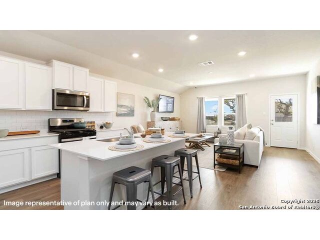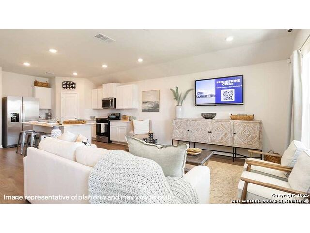 Smart design and spacious living come together in The Harris floor plan located at Brookstone Creek in San Antonio, TX - an elegant 1823 square foot, single-story home offering four bedrooms, two and a half baths and thoughtfully curated spaces for your lifestyle. An extended entryway leads you into a bright and open layout, where the kitchen, dining area and living room flow seamlessly together - perfect for family gatherings and entertaining. The kitchen is a modern showpiece with stainless steel appliances, a gas cooking range, quartz countertops, stylish flat panel cabinetry and a farmhouse-style sink. A spacious island anchors the space while a classic white subway tile backsplash ties everything together with timeless appeal. Privately located at the rear of the home, the primary bedroom suite is a true retreat, featuring a walk-in shower, dual vanity sinks and a generously sized walk-in closet. The secondary bedrooms offer comfort and flexibility. Each includes carpet flooring, large windows and ample closet space - ideal for bedrooms or other flex spaces. The convenient half bathroom adds a practical touch for visitors without sacrificing privacy in the full bathrooms. This home includes our HOME IS CONNECTED base package. Using one central hub that talks to all the devices in your home, you can control the lights, thermostat and locks, all from your cellular device. Additional highlights include hard surface flooring throughout the main living areas and wet zones, a covered patio (per plan) for relaxing outdoors, full yard landscaping with irrigation and a pre-plumbed water softener loop to support your future upgrades. The Harris offers the perfect mix of space, function and style - all set within the inviting community of Brookstone Creek. Modern design meets everyday livability in The Gaven floor plan located at Brookstone Creek in thriving San Antonio, TX! This spacious 1778 square foot, single-story home offers four bedrooms, two full bathrooms and a well-balanced layout perfect for a variety of lifestyles. From the moment you enter, a welcoming foyer sets the tone for the home's open and airy feel. The kitchen, dining area and living room are centrally located in an open-concept design, making it easy to entertain or enjoy everyday moments. The kitchen is both stylish and functional, showcasing stainless steel appliances, a gas cooking range, quartz countertops, flat panel cabinetry and a farmhouse-style sink. A spacious kitchen island and white subway tile backsplash add the finishing touches to this modern culinary space. The primary suite, tucked away at the rear of the home for privacy, offers a generous retreat complete with a tiled walk-in shower, dual vanity sinks and a walk-in closet. Your secondary bedrooms are thoughtfully designed to offer privacy and flexibility. Each room features quality carpet flooring, windows and ample closet space, making them ideal for children, guests or a home office. This home includes our HOME IS CONNECTED base package. Using one central hub that talks to all the devices in your home, you can control the lights, thermostat and locks, all from your cellular device. Enjoy outdoor living with a covered patio (per plan), full yard professional landscaping package and irrigation, ensuring that your home looks its best every single day. The Harris floor plan offers thoughtful design, stylish finishes, and plenty of room to grow - right here in vibrant Brookstone Creek.