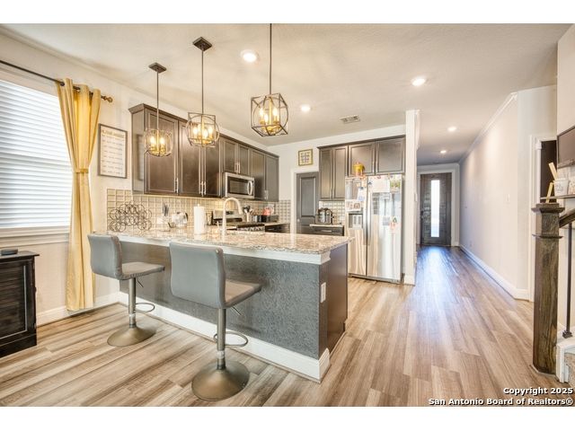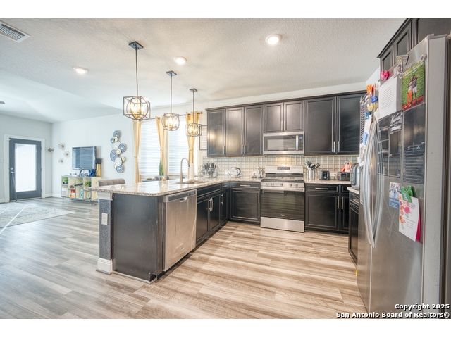 Welcome to 2518 Castello Way, a stunning 4-bedroom, 3.5-bath home located in the highly desirable Encino Park area of northeast San Antonio. Built in 2021, this modern two-story residence features a bright, open-concept layout with high ceilings, abundant natural light, and elegant finishes throughout. The gourmet kitchen is the heart of the home, complete with quartz countertops, stainless steel appliances, a large island, and custom cabinetry-perfect for both everyday living and entertaining. The luxurious primary suite offers a private retreat with a spa-style bathroom featuring dual vanities, a soaking tub, a separate walk-in shower, and a spacious walk-in closet. Upstairs, you'll find additional bedrooms and a versatile loft that can serve as a home office, playroom, or media area. The outdoor living space includes a covered patio and a beautifully maintained yard ideal for barbecues or relaxing evenings with family and friends. Nestled within the Encino Park community, residents enjoy access to exceptional neighborhood amenities including a resort-style swimming pool, dog park, walking and biking trails, tennis and basketball courts, playgrounds, and a clubhouse that hosts community events throughout the year. This family-friendly neighborhood is surrounded by mature trees, greenbelts, and peaceful streets, creating a comfortable suburban atmosphere just minutes from the city's best conveniences. Located within the highly acclaimed North East ISD, this home is near Encino Park Elementary, Tejeda Middle School, and Johnson High School-each recognized for academic excellence. With quick access to Loop 1604 and US-281, residents enjoy short commutes to major employers, shopping centers like Village at Stone Oak and Bulverde Marketplace, and top-rated restaurants and medical facilities. Combining modern elegance, vibrant amenities, and an unbeatable location, 2518 Castello Way offers the perfect blend of comfort, lifestyle, and value in one of San Antonio's most sought-after communities.