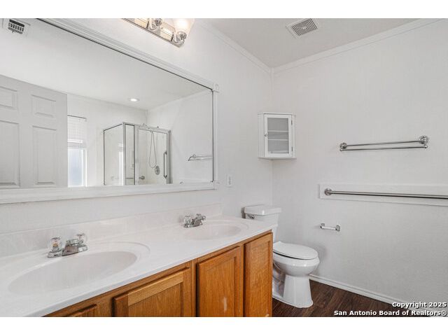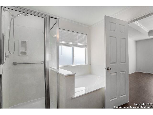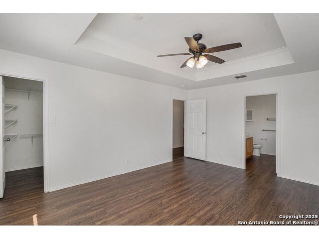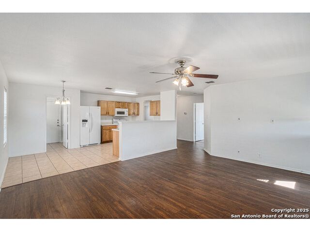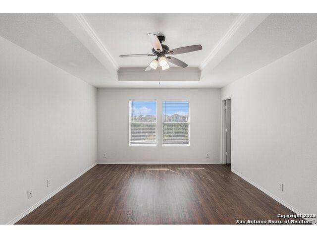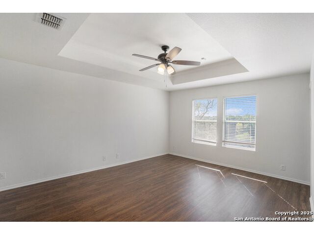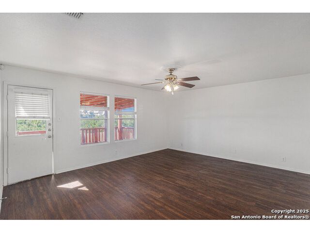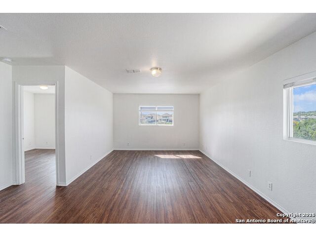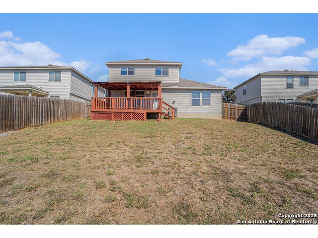 Welcome to this fantastic, move-in ready, 4-bedroom, 2.5-bathroom home in the desirable Bulverde Village subdivision of San Antonio. The heart of the home is perfect for entertaining, featuring large spaces that flow effortlessly from one room to the next. The kitchen is equipped with laminate countertops and white appliances. The primary bedroom is conveniently located on the ground floor, boasting elegant tray ceilings and an ensuite with a walk-in shower and garden tub. Upstairs, you will find the remaining bedrooms along with a large, versatile flex space perfect as a secondary living area or game room. Step outside to a large, covered back deck with a private treeline view and no rear neighbors. The fenced-in backyard below is ideal for entertaining. Located in a prime spot in northern San Antonio, this home is convenient to major highways, shopping, and restaurants. Don't miss the chance to make this lovely home yours! Schedule your showing today!