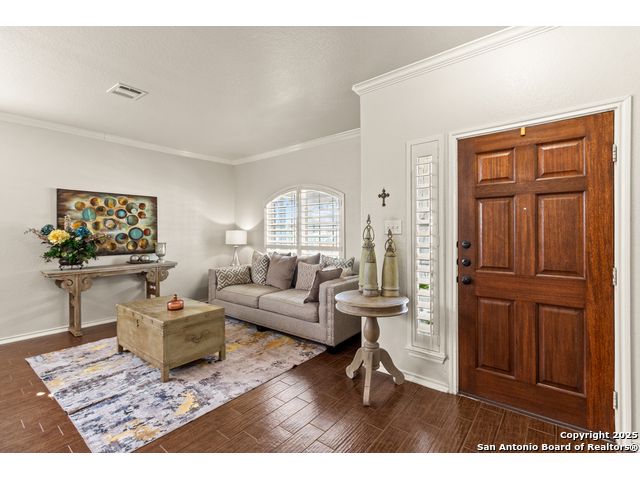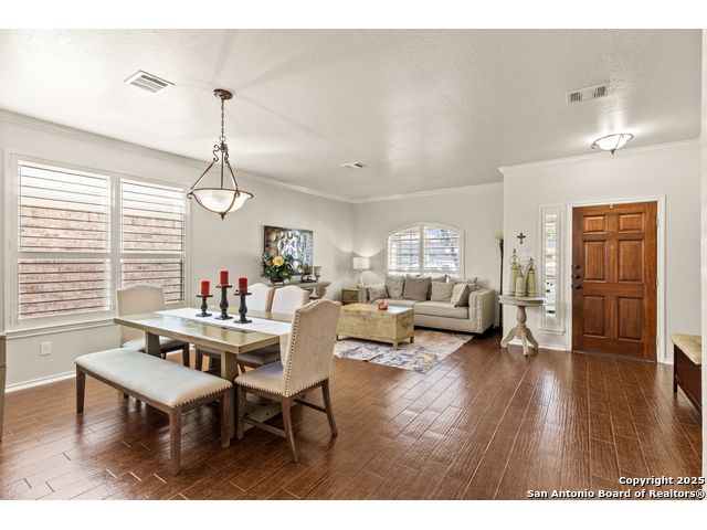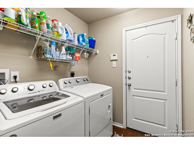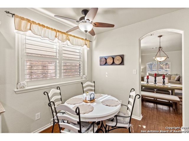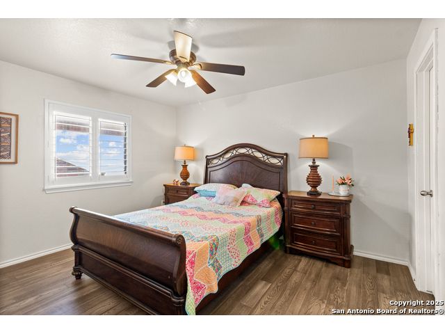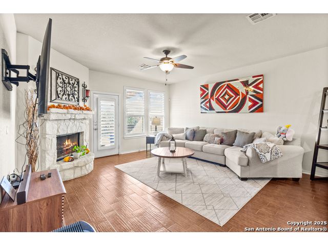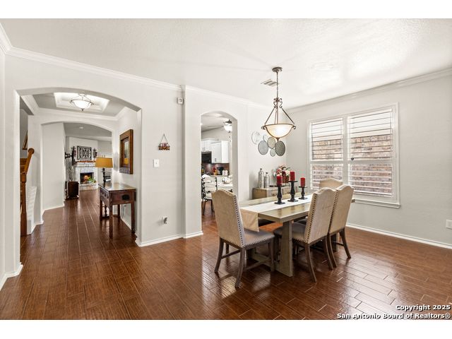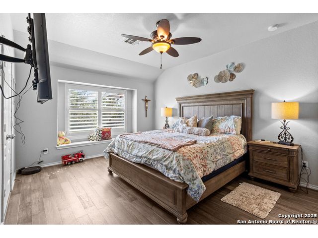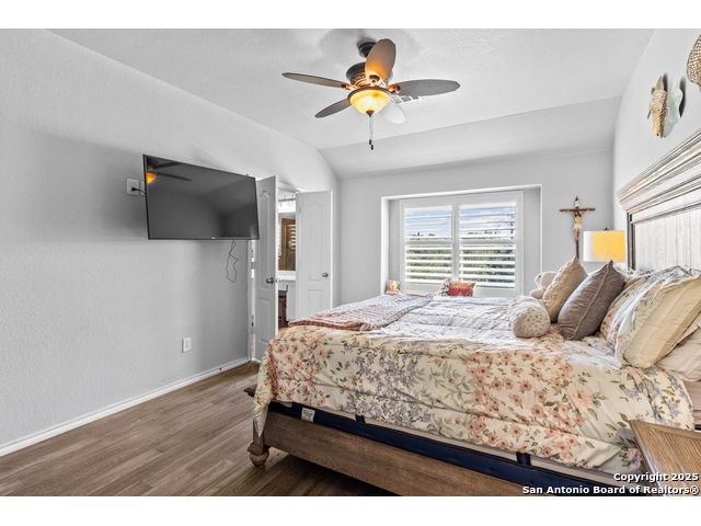 The home you've been waiting for! This versatile 4BR/3BA features an open floor plan with stylish wood-look tile and engineered wood flooring throughout the downstairs living areas and master suite. The upstairs offers cozy carpet, a large pre-wired media room, and a 4th bedroom with full bath. The downstairs master includes an adjoining room-perfect for an office, nursery, or gym-plus another bedroom and full bath on the main level. Enjoy a private backyard backing to a peaceful greenbelt, just steps from the community pool, playground, and trails. Recent updates include a new HVAC (2023) and water softener. Beautiful, flexible, and move-in ready!