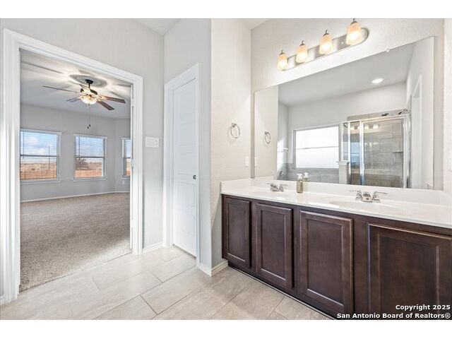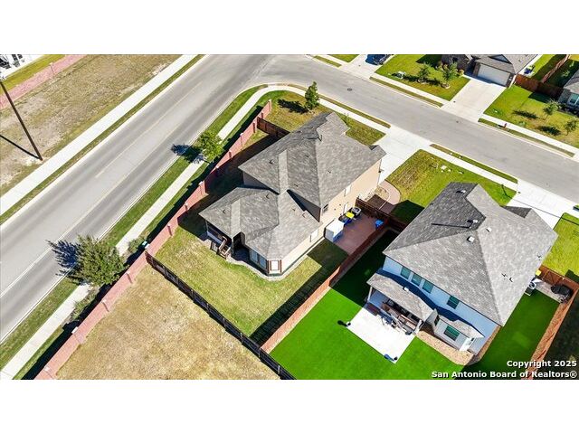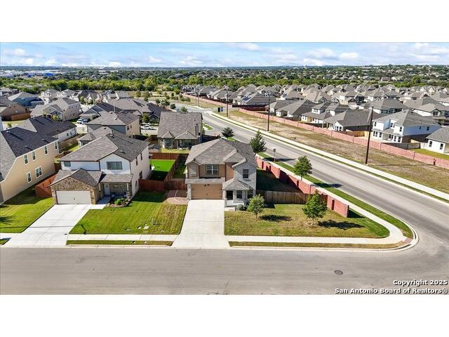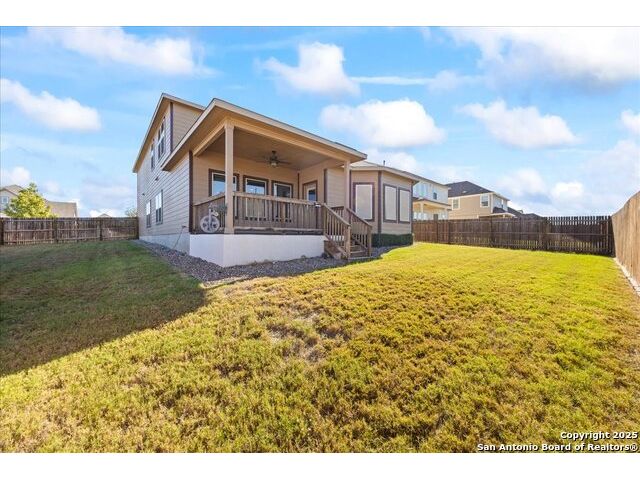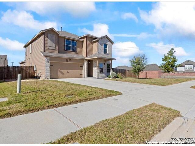 Still dreaming of a 3.25% interest rate? Here's your chance! This stunning, nearly new 5-bedroom, 3.5-bath home offers an assumable VA loan at just 3.25% and is still under builder warranty. Step inside to an inviting open layout featuring a private office, spacious game room, media room, and a two-car garage. The primary suite is conveniently located downstairs and includes a luxurious ensuite bath with double vanities and a large walk-in closet. The kitchen flows seamlessly into multiple dining areas, making it ideal for both everyday living and entertaining. Upstairs, you'll find four additional bedrooms along with a large game room and dedicated media room-perfect for movie nights or family fun. Situated on a premium corner lot, this home offers plenty of outdoor space and great curb appeal. Upgrades include a water softener, under-sink filtration system, 80-gallon high-efficiency water heater, insulated garage with overhead storage, sprinkler system, paved walkway and side-yard pad, gutter alternative system, window tint and solar screens on the sunny side, pantry shelving, humidity detectors in bathrooms, and CAT 6 internet wiring throughout. Conveniently located just minutes from top-rated schools, shopping, dining, downtown Cibolo, and Randolph Air Force Base, this home combines comfort, convenience, and exceptional value. With a low assumable 3.25% interest rate, this opportunity won't last long. Come see it today!