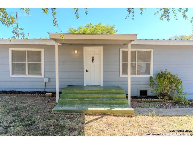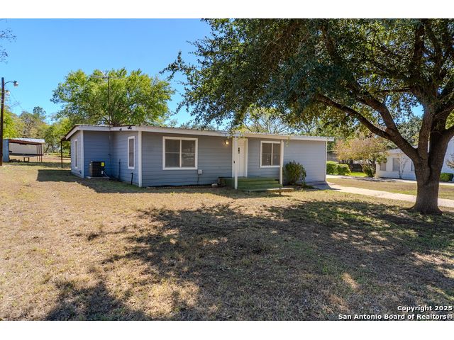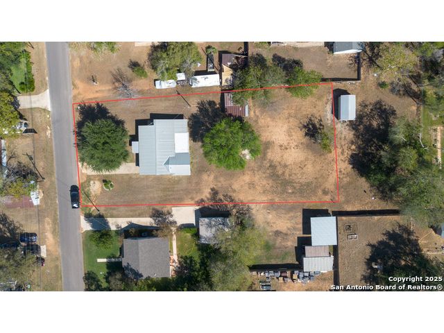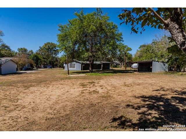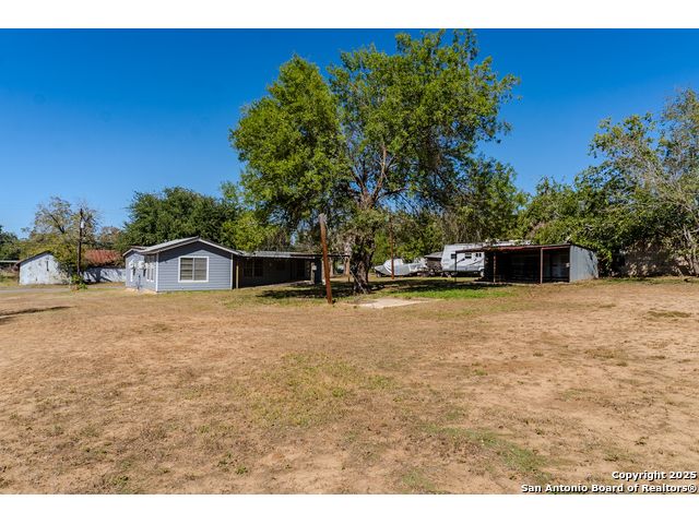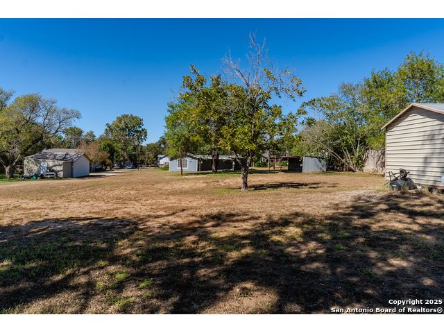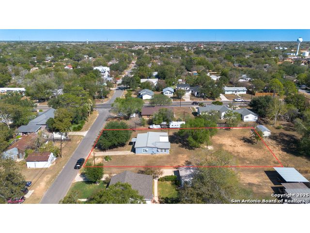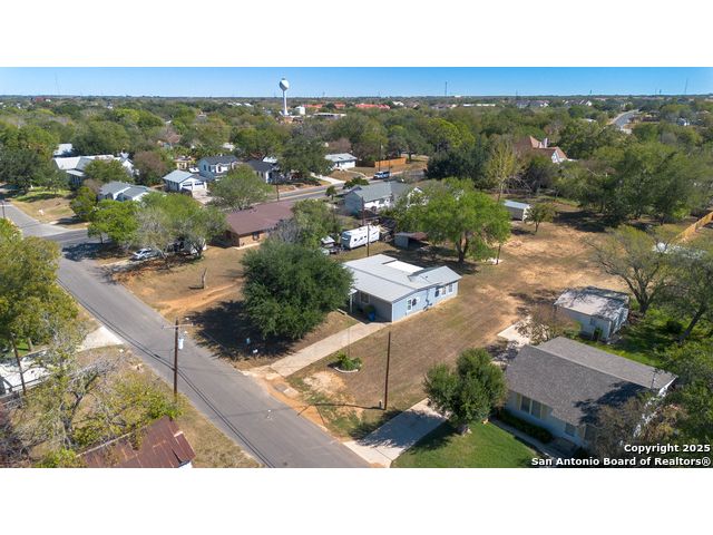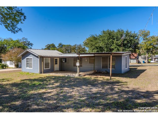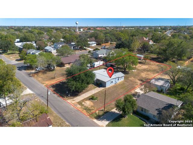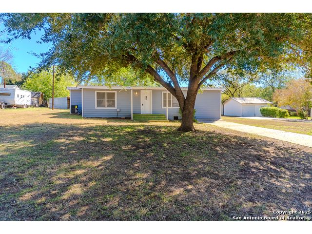 Discover endless possibilities in this charming single-story home near downtown Floresville! Features 3 bedrooms, 2 baths, and 2 living areas across 1,442 sq. ft. on a spacious 0.48-acre lot with gorgeous mature trees. Enjoy wood floors throughout (no carpet), new HVAC (Sept 2025), mini split in primary bedroom/flex room, new gas stove, metal roof, new cement fiber siding, and fresh paint inside & out. Huge backyard with covered patio, perfect for relaxing or entertaining. Detached structure ideal for carport or workshop. Great location near El Camino Trail, Pecan Park & River Park, just 20 mins to San Antonio!