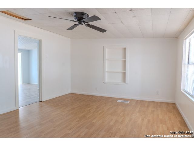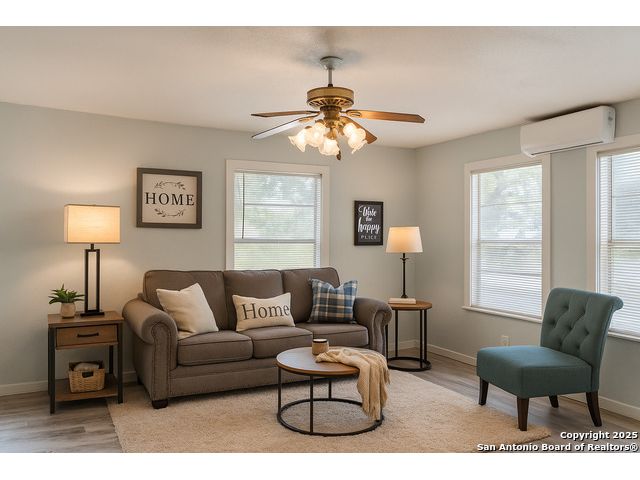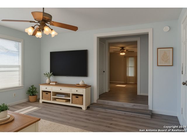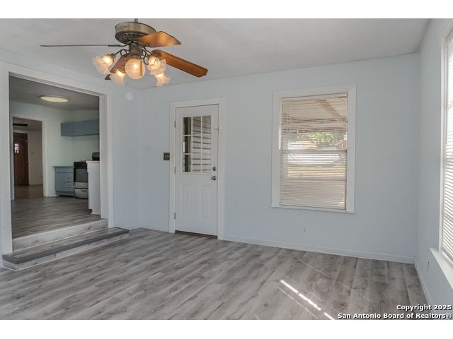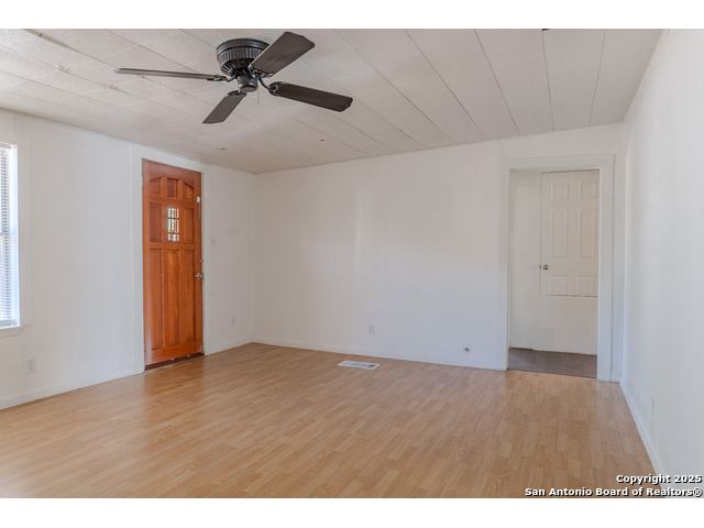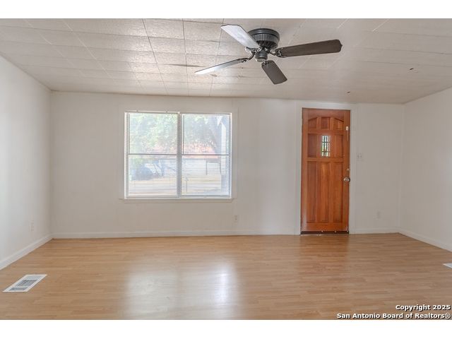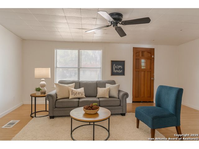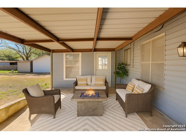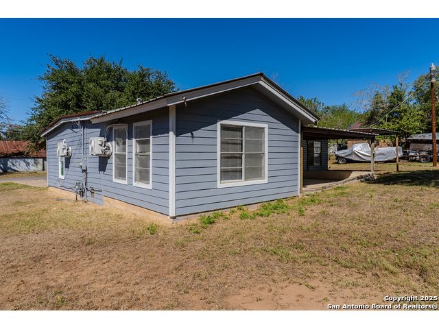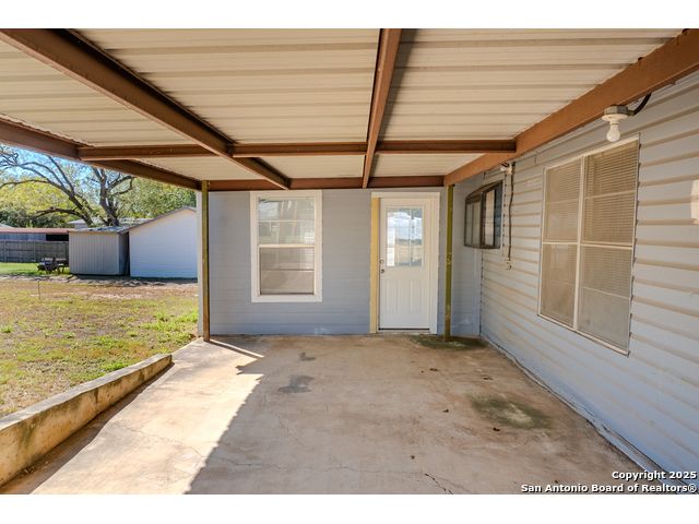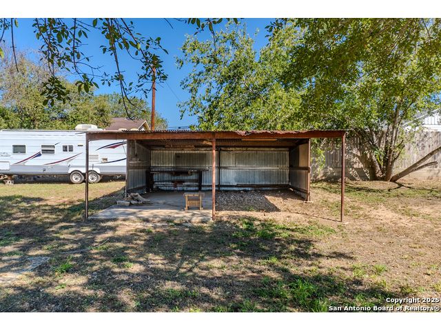 Discover endless possibilities in this charming single-story home near downtown Floresville! Features 3 bedrooms, 2 baths, and 2 living areas across 1,442 sq. ft. on a spacious 0.48-acre lot with gorgeous mature trees. Enjoy wood floors throughout (no carpet), new HVAC (Sept 2025), mini split in primary bedroom/flex room, new gas stove, metal roof, new cement fiber siding, and fresh paint inside & out. Huge backyard with covered patio, perfect for relaxing or entertaining. Detached structure ideal for carport or workshop. Great location near El Camino Trail, Pecan Park & River Park, just 20 mins to San Antonio!