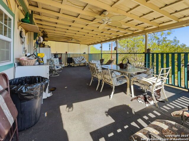 Discover your dream retreat with this amazing riverfront property nestled in the heart of Bandera, Texas. This charming 3-bedroom, 2-bathroom manufactured home offers a perfect blend of comfort and outdoor living, making it an ideal getaway or permanent residence. Key Features: Spacious Main Home: Enjoy the open layout of the 3/2 manufactured home, complete with a cozy fireplace for those chilly winter nights. Outdoor Living: Relax on the large covered front and back decks, where you can soak in breathtaking views of the river and surrounding bluffs. Handyman's Paradise: A dedicated workshop and a metal shed provide ample space for all your tools and projects. Convenient Carports: Two carports-one by the street and another down below-offer easy access and protection for your vehicles. Guest Accommodations: Across the street, a charming 1-bedroom, 1-bathroom guest house awaits, complete with a shed and a 3-car enclosed carport/boat storage, perfect for hosting friends and family or generating rental income. Location Highlights: Situated along the scenic riverfront, this property offers endless opportunities for outdoor activities, including fishing, kayaking, when the river is up. We are currently in a drought. Enjoy the small-town charm of Bandera, known as the "Cowboy Capital of the World," with its vibrant local culture, shops, and dining options.