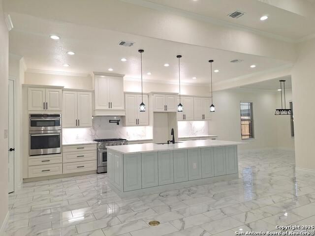 Stunning Custom-Built 2023 Home - Corner Lot! This immaculate 3-bedroom, 2-bath home features porcelain tile floors, an open-concept living area with a modern fireplace, and a chef's kitchen with white quartz countertops, oversized island, 6-burner gas stove, and pot filler faucet. The master suite offers walk-in closet, luxurious bathroom, and convenient lighting controls, while crown molding and thoughtful custom touches elevate the entire home.Enjoy a private backyard oasis with pergola, gas BBQ, griddle, shed, and concrete patio - perfect for entertaining. Two-car garage, easy access to IH 35, 1604, I-10, and a short drive to New Braunfels, San Marcos, and Austin. A must-see home! ******** NO HOA********