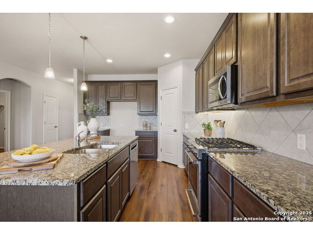 Beautiful Move-In Ready Home in Gated Ladera Community Welcome to this stunning 4-bedroom, 2.5-bath home located in the highly sought-after gated section of Ladera. With 2,760 square feet of thoughtfully designed living space, this home is ready for you to move right in! Step inside to find an open layout perfect for entertaining and everyday living. The dedicated office space is ideal for remote work or study. Car enthusiasts and hobbyists will love the three-car garage, complete with overhead storage racks, built-in cupboards, a full workspace, and a Tesla charger, as well as epoxy flooring - an actual dream setup for organization and projects. Enjoy outdoor living on the beautifully built deck overlooking the backyard - perfect for relaxing or hosting gatherings. They community also just added new pickle ball courts for family fun. Conveniently located near Highway 90 and Loop 211, this home is ideal for commuters while still offering the privacy and security of a gated community