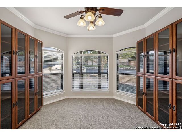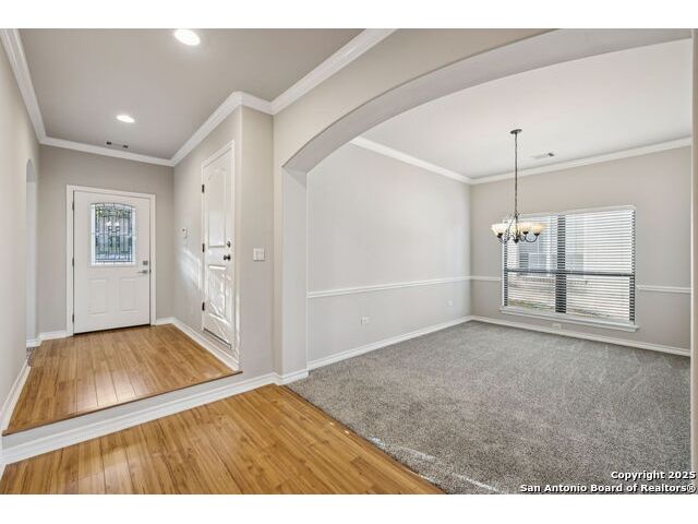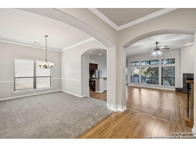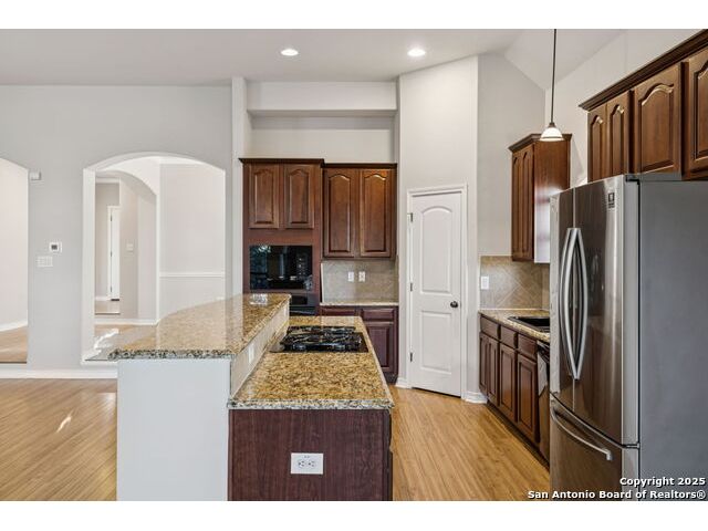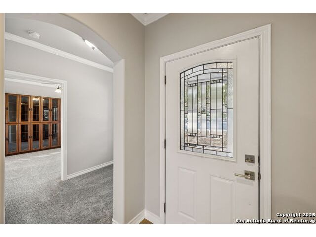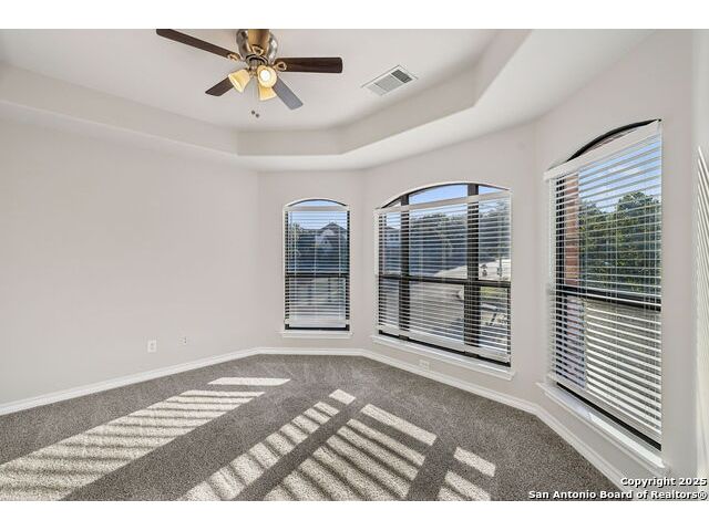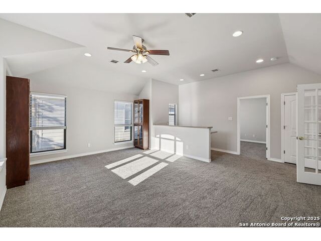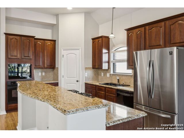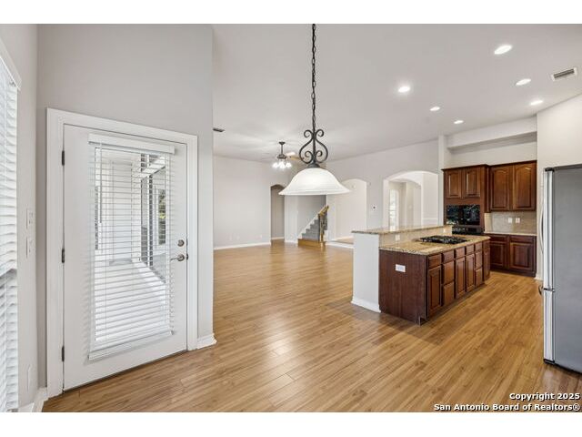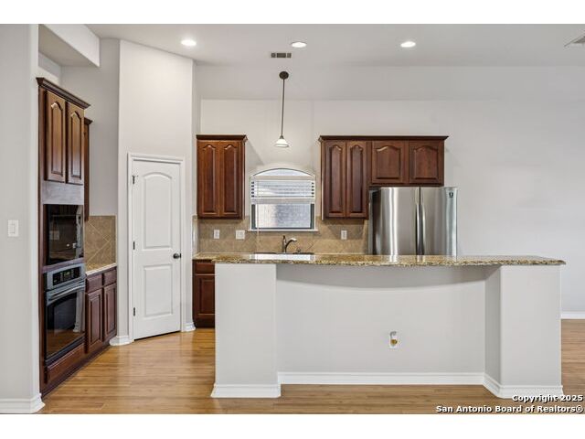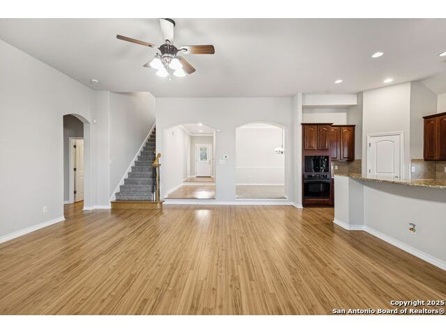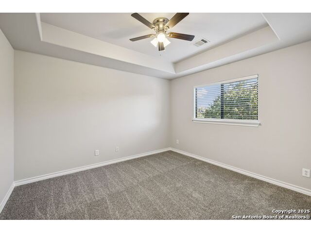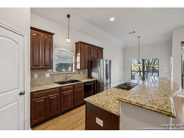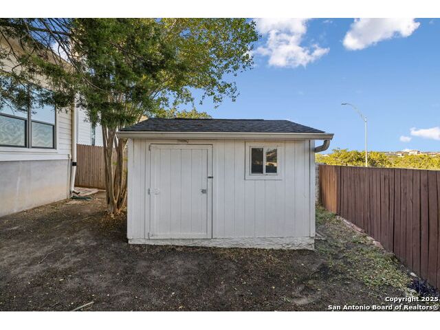 UNPACK, RELAX AND ENJOY!! From the moment you arrive, the majestic curb appeal and pristine updates of this home will take your breath away! Truly move-in ready from top to bottom, every detail has been meticulously cared for-offering a perfect blend of comfort, space, and modern style for a growing family. Inside, glistening laminate floors guide you through generous living spaces, including a formal dining room ready for twelve, a sun-kissed breakfast area overlooking the patio, and a granite island kitchen with gas cooking and all appliances included. The oversized master suite downstairs provides a quiet retreat with a spa-like Jacuzzi tub, while a flex study offers the versatility of a downstairs fifth bedroom. Upstairs, the Texas-sized game room and three spacious secondary bedrooms-with brand new carpet and ceiling fans-are ideal for kids and guests alike. Enjoy peace of mind with extensive updates: new roof (2023), new A/C units (2024), new interior paint (2025), and a new water heater (2022)-all with transferable warranties. Outdoors, relax under the pergola-covered patio or store with ease in the backyard shed. Perfectly located near Hwy 281 and less than 15 minutes to the San Antonio Airport, this stunning family home defines comfort, convenience, and lasting value.