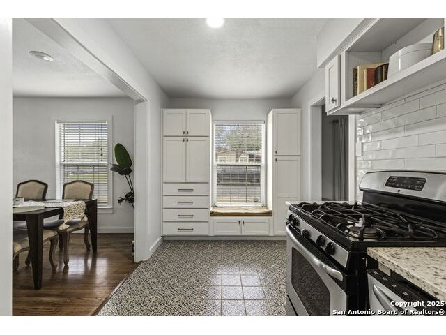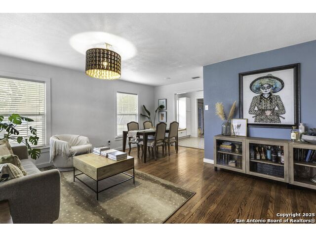 Welcome to this beautifully updated mid-century home, ideally located just around the corner from Fort Sam Houston and minutes from the airport, downtown San Antonio, and the Pearl. Offering both convenience and comfort, this property is perfect for those seeking a centrally located residence. Inside, you'll find an updated kitchen, original hardwood floors and tile throughout -no carpet anywhere. The home features two spacious living areas, providing flexibility for entertaining, relaxing, or working from home. Step outside to a covered patio, perfect for year-round outdoor enjoyment.