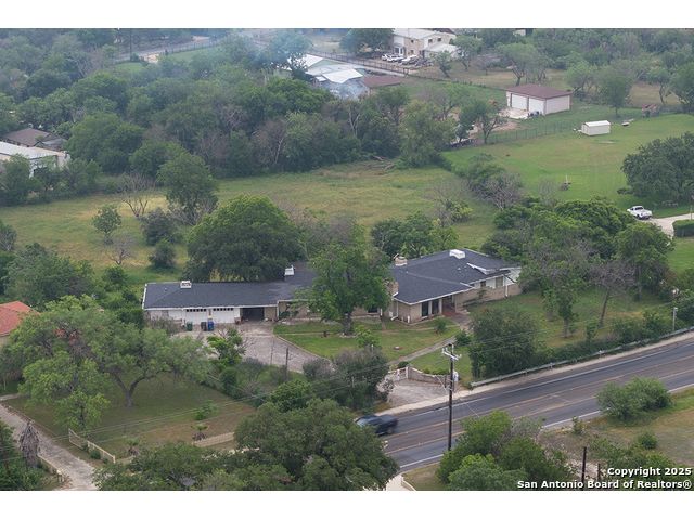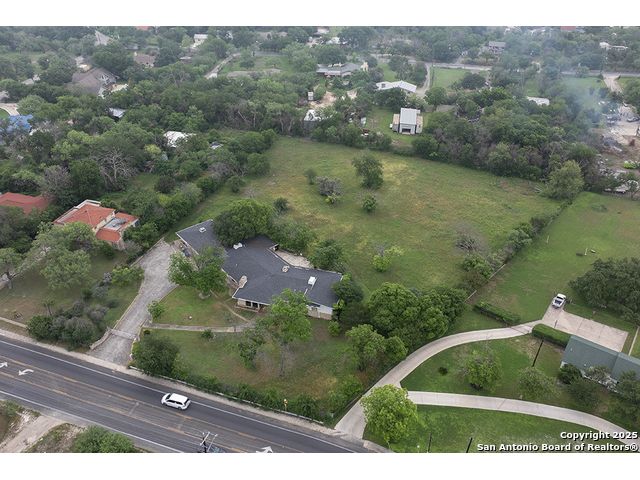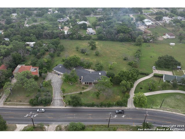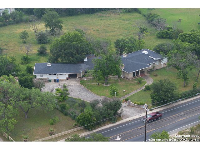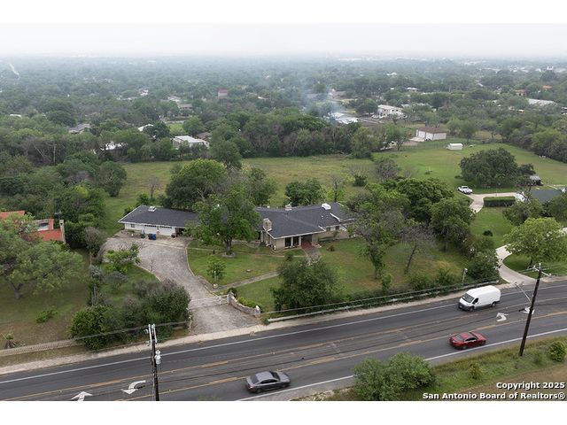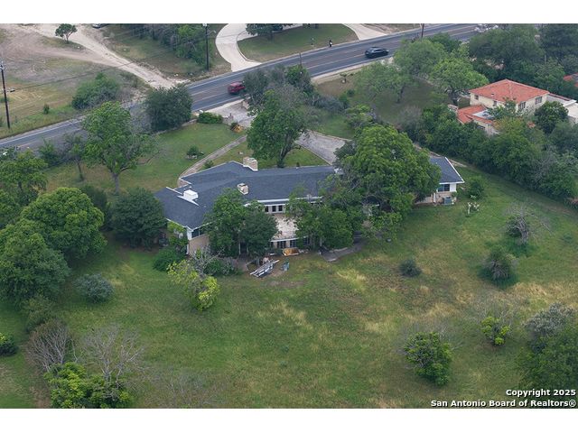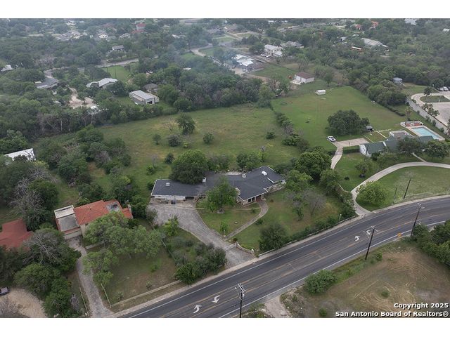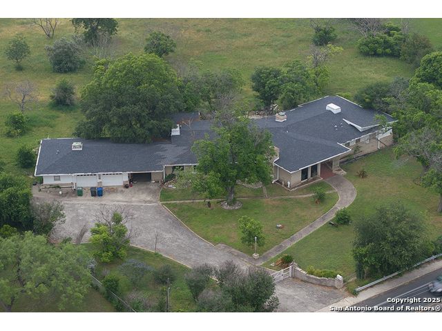 Unique, mid-century architecture home on huge lot overlooks downtown skyline! Custom built during the cold war to surprisingly reinforced structure underneath. Second primary suite sits in it's own wing near kitchen. Bedroom 2 off entry attached to primary bedroom though bath makes ideal office/nursery. Granite tops in kitchen and primary bath. Wood parquet flooring throughout. Large back patio with grill overlooks downtown San Antonio. Teen room/guest suite/maids quarters located behind garage with full bath! Incredible storage includes large pantry, big closets and walk out basement area beneath. Sitting on 2.74 acres with grafted pecan trees and gated entry.