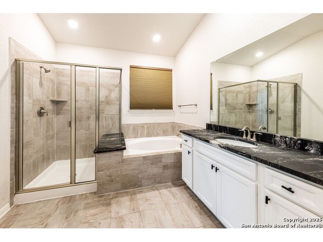 A beautifully designed 3-bedroom, 3-bath home with a dedicated media room in the sought-after Sienna subdivision! This energy-efficient home features solar panels, a reverse osmosis water system, and a whole-home water softener for comfort and savings. The open-concept floor plan includes a spacious living area, gourmet kitchen with stainless steel appliances, large island, and ample cabinetry. The owner's suite offers a luxurious ensuite bath and walk-in closet. Enjoy outdoor living on the covered patio overlooking a private backyard ( no rear neighbors). Conveniently located near Loop 1604, Hwy 281, and Stone Oak shopping and dining - this move-in-ready home combines style, sustainability, and convenience in one perfect package!