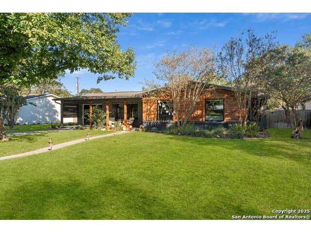 Welcome home to this stunningly reimagined mid-century modern retreat! Essentially rebuilt from the studs up, this one-story residence offers modern comfort and timeless design with every major upgrade already completed. Major upgrades include refinished hardwood floors (2023), all-new stainless steel appliances, soft-close cabinetry, and an open, light-filled layout-ideal for gatherings and entertaining. Recent updates include a new roof (2022), HVAC system (2022), air ducts (2023), extensive plumbing and electrical work (2022), a tankless water heater (2023), and soundproofing in the front wing of the house. Additional 2023 improvements include new windows, drywall, siding, doors, gutters, landscaping, sprinkler system, and attic insulation. Offering 5 bedrooms and 3 bathrooms in a functional split layout-allowing flexibility for a private guest suite or home office-this home is located within the highly sought-after Alamo Heights ISD, just steps from Woodridge Elementary and Alamo Heights Junior High.