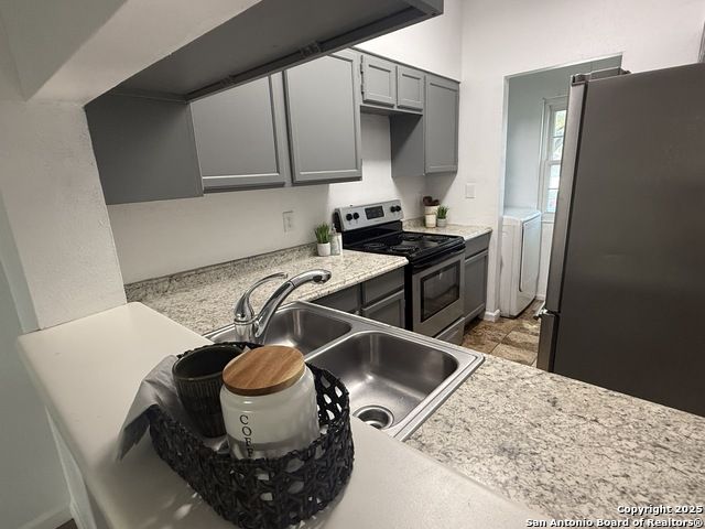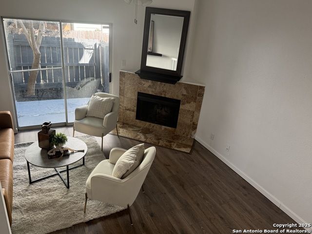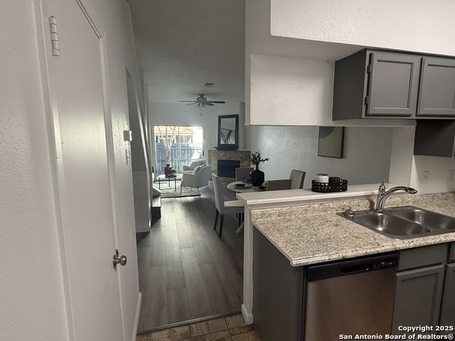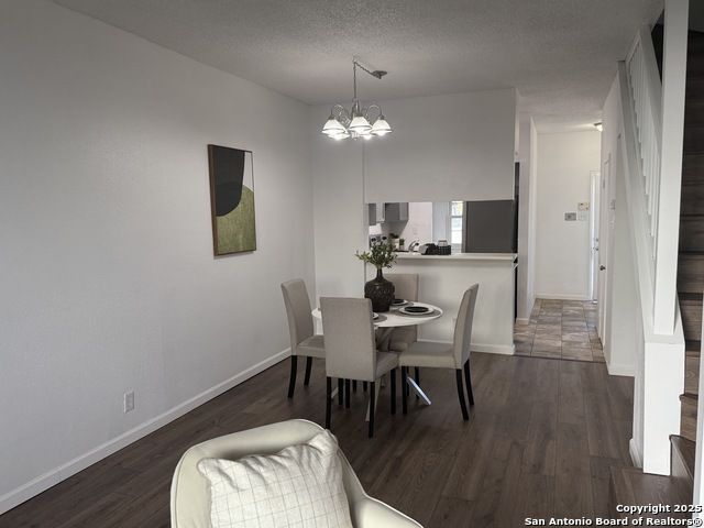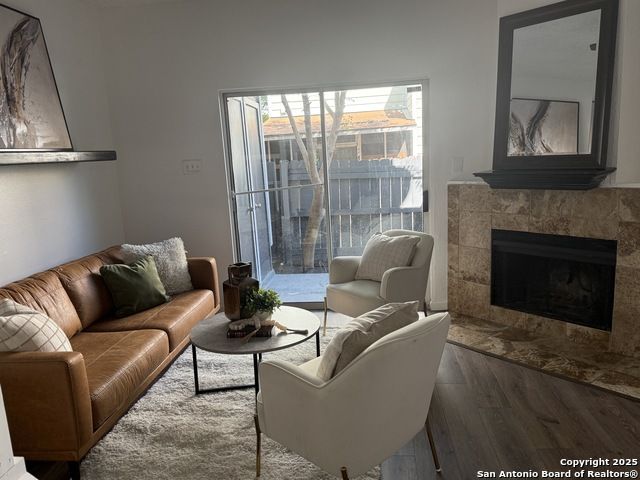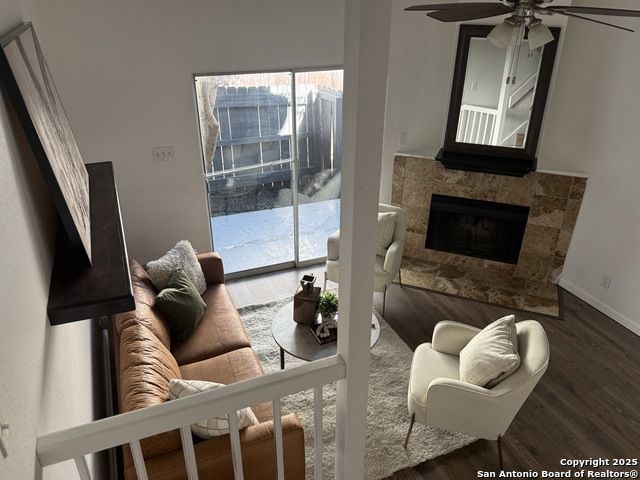 Newly remodeled 2 bed 2.5 bath with all new wood flooring througout, new paint inside and out, stainless appliances, and very nice finishes for this price point. The unit features two spacious bedrooms upstairs each with their own bathroom. The living room includes a nice open layout with vaulted ceilings, an inviting fireplace and smaller but cute kitchen. The community offers two pool areas and is walking distance to McAllister Park and many other outdoor activities. Move in ready unit with zero hassle on upkeep. Close to shops, dining and airport. Very nice flow through the entire unit and priced to sell. This will not last long.