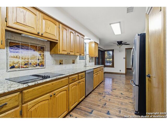 This spacious two-story home is perfectly located. The primary bedroom is conveniently situated on the ground floor, while the upstairs features two large bedrooms and a full bath. Enjoy the game room and family room, which includes a fireplace and overlooks the dining room. The kitchen is roomy and equipped with granite countertops; the refrigerator, washer, and dryer will also be included. Beautiful hardwood floors provide ease of maintenance throughout the home. Situated on a cul-de-sac lot, the property is enhanced by mature trees and a lovely covered porch. This prime location is ideal for commuters, conveniently located close to Medical Center and USAA with easy access to highways, shops, schools, downtown, and the airport all nearby.