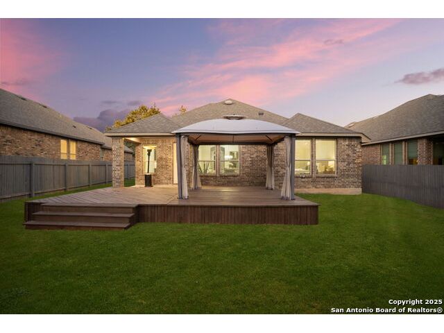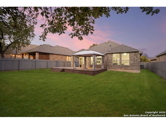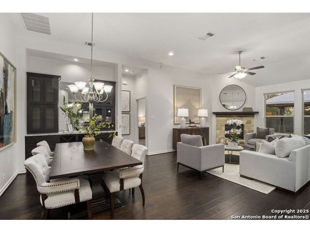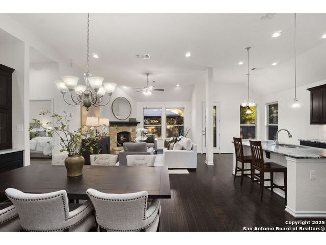 Move-in ready and located in the gated community of Ranches at Creekside, this beautifully maintained 4-bedroom, 3-bathroom home offers 2,442 square feet of thoughtfully designed living space. The open-concept floor plan features a spacious living room with a cozy fireplace, a dedicated office, and a formal dining room with custom built-in cabinetry and buffet. The updated kitchen is a chef's dream with gas cooking, stylish finishes, and seamless flow into the main living area-perfect for entertaining family and friends. The master suite provides a peaceful retreat with a spa-inspired bathroom that includes double vanities, a makeup counter, a soaking tub, and a separate shower. Enjoy outdoor living on the covered patio and expansive deck with a shaded sitting area, ideal for relaxing or hosting gatherings. Freshly painted with professionally cleaned carpets, this home is truly move-in ready. Residents of Ranches at Creekside enjoy exclusive access to a community pool, playground, and a welcoming neighborhood atmosphere. Conveniently located just minutes from downtown Boerne, this property offers easy access to top-rated Boerne ISD schools, local shopping, dining, and all the charm of the Texas Hill Country.