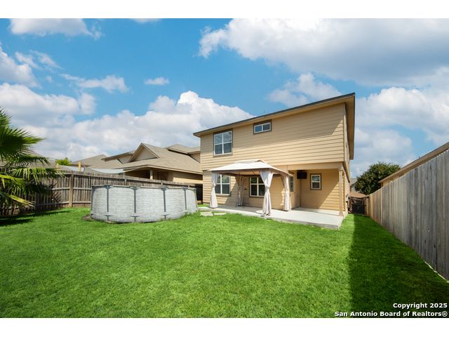 Move-in ready and in meticulous condition, this two-story home offers comfort, and ease of living. Open-concept island kitchen with granite counters, pendant lighting, stainless appliances, and abundance of cabinets flows easily into living/entertaining area. Great outdoor entertaining space with covered area, above ground relaxation pool, gazebo and no rear neighbors. High ceilings and generous spaces highlight the layout including the upstairs with game room, master suite and guest suites. For an easier transition, washer/dryer, refrigerator, outdoor TV and gazebo convey. Ideally located near 1604, major highways, HEB, shopping, restaurants, Lackland AFB, Sea World, NISD schools and more exciting developments!