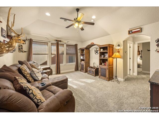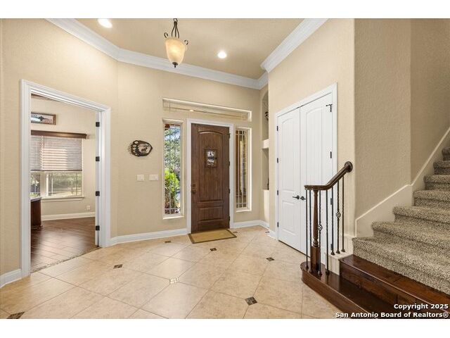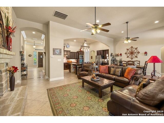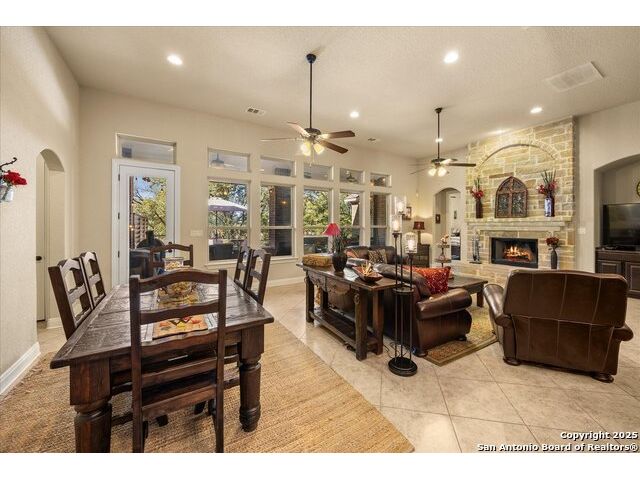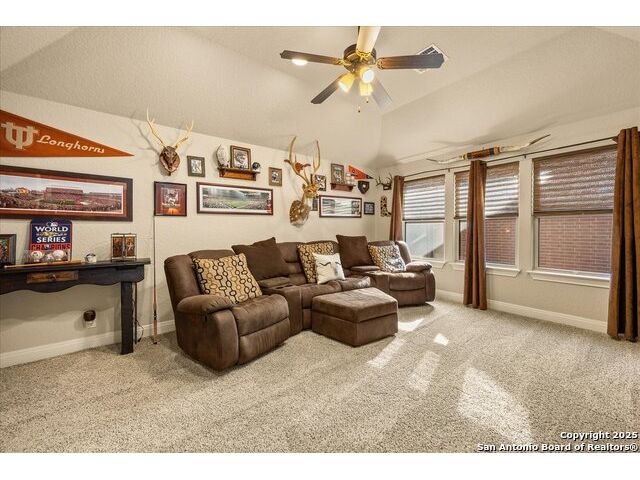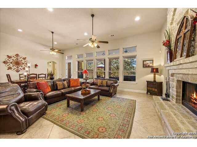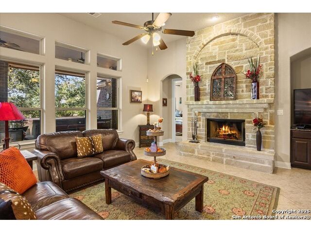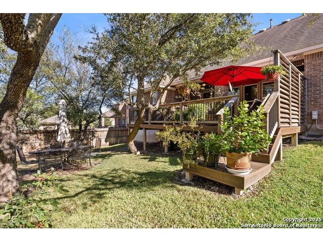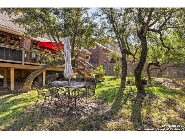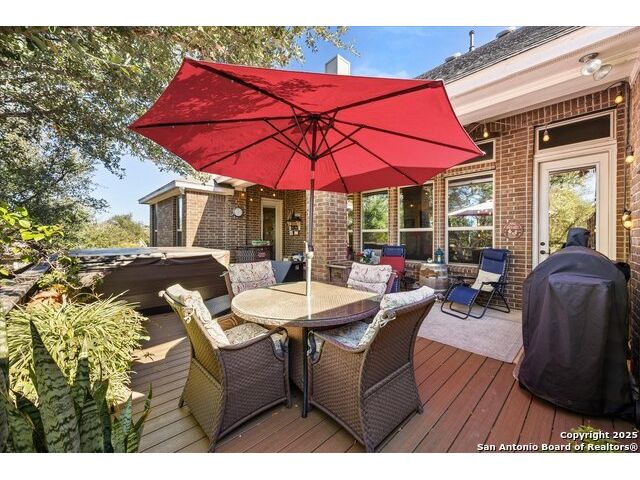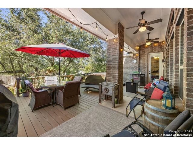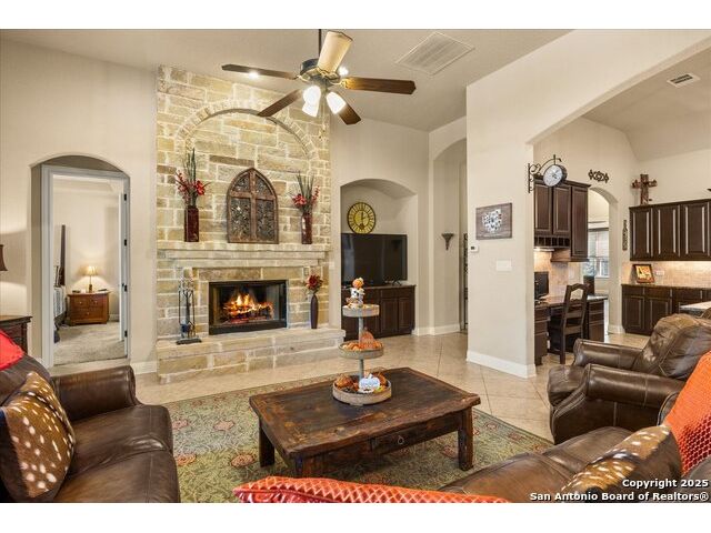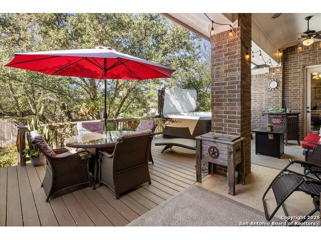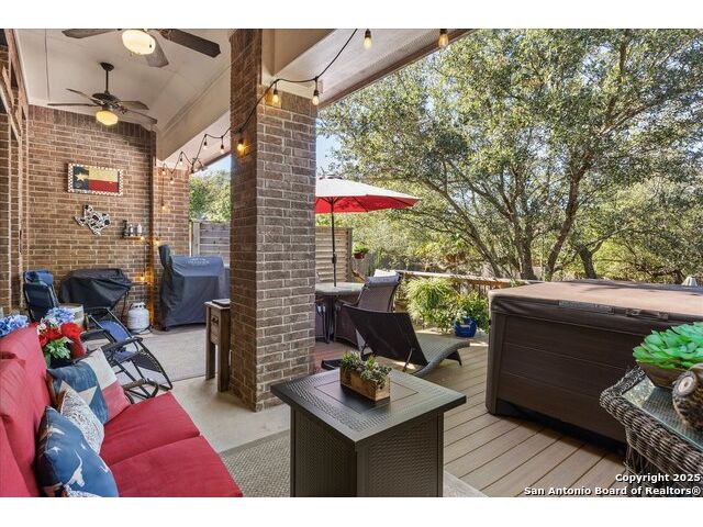 Welcome to 8907 Irving Hill, a spacious 4-bedroom, 3.5-bath home tucked away in the gated Front Gate community of Fair Oaks Ranch on a private street with elevated cul-de-sac. This home, the only one in the neighborhood with this unique floor-plan, has a gorgeous open layout with 12-foot ceilings, a formal dining room, private office, and a cozy family room featuring a stone fireplace with a raised hearth and masonry mantle. You'll love the details throughout; tile flooring with a mosaic design at the entry, wood floors in the dining and study, and plenty of natural light. Upstairs offers a sizable game room with built-in desk and cabinets, plus a fourth bedroom and full bath, perfect for guests or family. The backyard is a true retreat with mature shade trees for privacy, a new Trex deck off the covered patio, and a "Hot Springs Highlife Collection Hot Tub" for relaxing at the end of the day. Located in the blue ribbon acclaimed Boerne ISD, just minutes from downtown Boerne, The Rim, and La Cantera, this home offers the best of both worlds - quiet Hill Country living with easy access to shopping, dining, and entertainment. Original owners have taken meticulous care of this stunning home! Come and see!