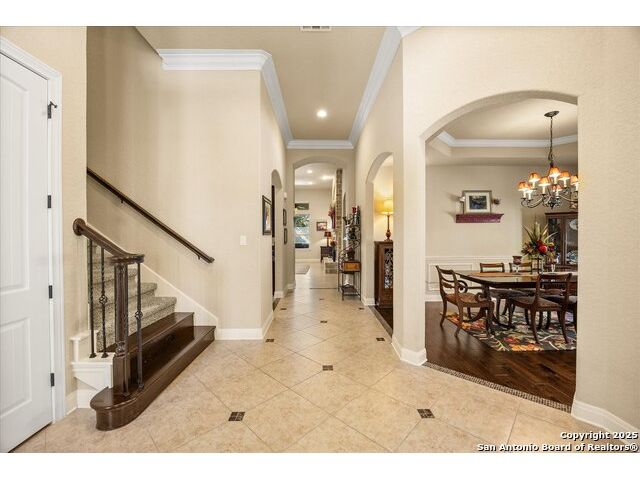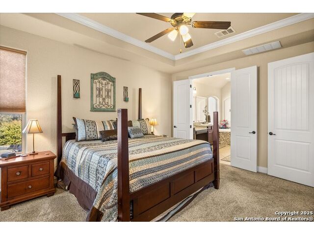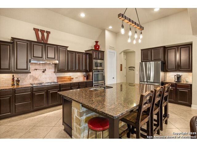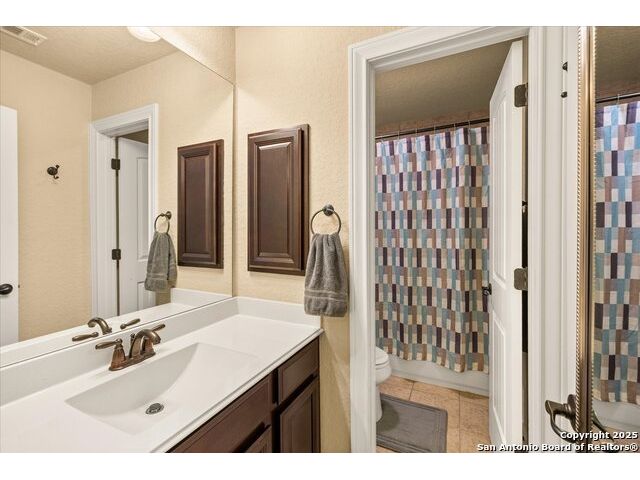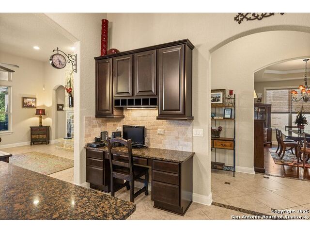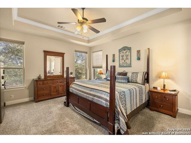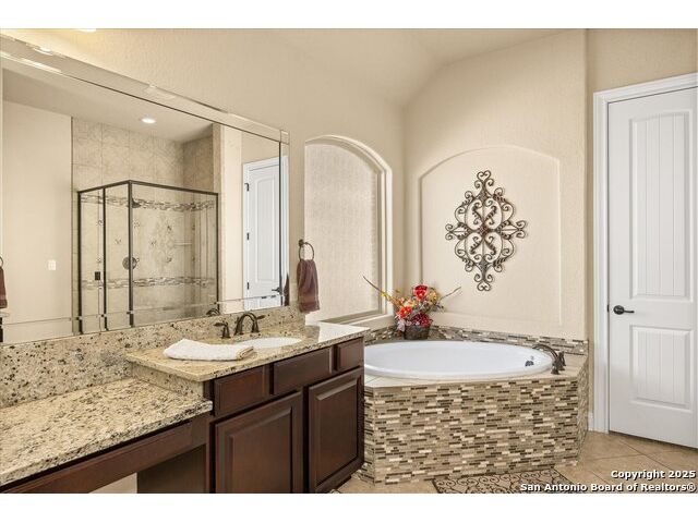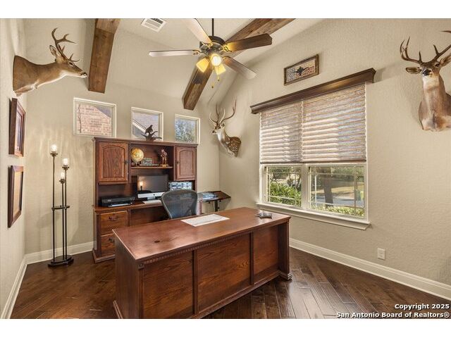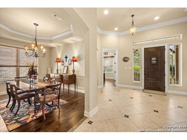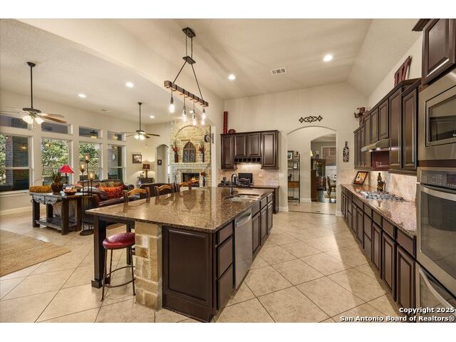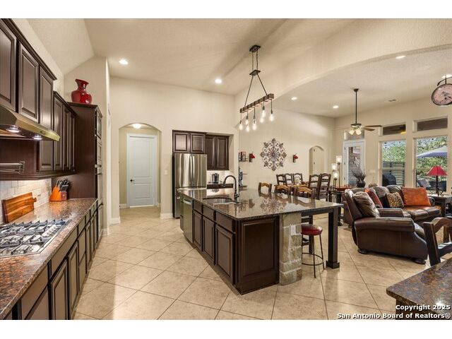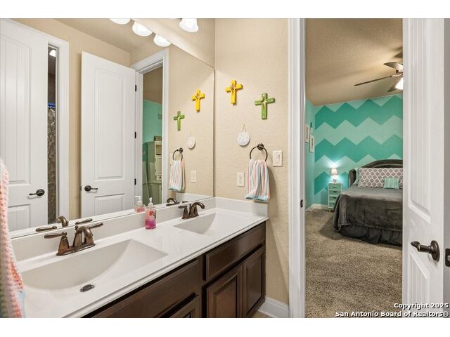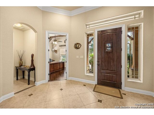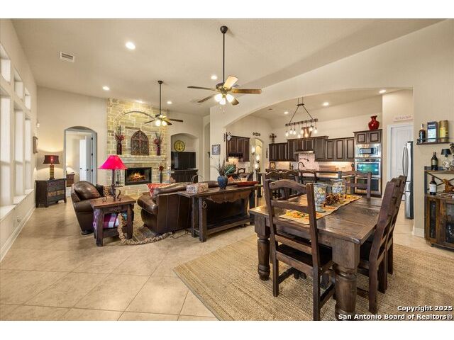 Welcome to 8907 Irving Hill, a spacious 4-bedroom, 3.5-bath home tucked away in the gated Front Gate community of Fair Oaks Ranch on a private street with elevated cul-de-sac. This home, the only one in the neighborhood with this unique floor-plan, has a gorgeous open layout with 12-foot ceilings, a formal dining room, private office, and a cozy family room featuring a stone fireplace with a raised hearth and masonry mantle. You'll love the details throughout; tile flooring with a mosaic design at the entry, wood floors in the dining and study, and plenty of natural light. Upstairs offers a sizable game room with built-in desk and cabinets, plus a fourth bedroom and full bath, perfect for guests or family. The backyard is a true retreat with mature shade trees for privacy, a new Trex deck off the covered patio, and a "Hot Springs Highlife Collection Hot Tub" for relaxing at the end of the day. Located in the blue ribbon acclaimed Boerne ISD, just minutes from downtown Boerne, The Rim, and La Cantera, this home offers the best of both worlds - quiet Hill Country living with easy access to shopping, dining, and entertainment. Original owners have taken meticulous care of this stunning home! Come and see!
