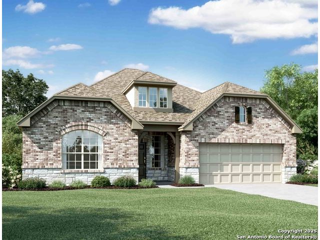 This beautifully designed one-story home combines comfort, style, and functionality in every detail. The open layout centers around a spacious family room with a coffered ceiling that flows into the modern kitchen and dining area. The kitchen features a large island, built-in appliances, and a walk-in pantry, while a separate dining room offers a welcoming space for gatherings. The large primary suite includes a luxurious bathroom with dual vanities, a garden tub, a separate shower, and a generous walk-in closet. Two secondary bedrooms share a full bath, and a convenient powder bath is perfect for guests. A super utility room provides abundant storage, and a covered patio overlooks the landscaped yard with a full sprinkler system. With thoughtful details like in-wall pest control and elegant finishes throughout, this home blends practicality with modern charm. This home features design selections thoughtfully curated by our professional studio team. Each finish, from flooring and cabinetry to countertops and special touches, is chosen with care to create a cohesive and beautifully balanced look. Guided by timeless design principles and inspired by modern lifestyles, the result is a home that is both stylish and welcoming from the moment you step inside. This home is located in Saddlebrook Ranch, a master-planned community in the charming city of Schertz-named one of CNN/Money's top small towns. Enjoy easy access to I-35, premier shopping, dining, and Randolph Air Force Base. Planned amenities include a sparkling pool and playground, perfect for family fun. With the highly regarded Schertz-Cibolo-Universal City School District nearby, Saddlebrook Ranch offers the ideal blend of community, convenience, and small-town charm.