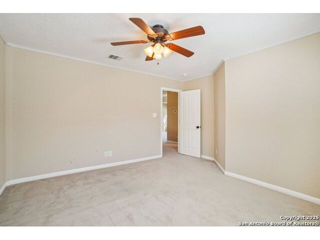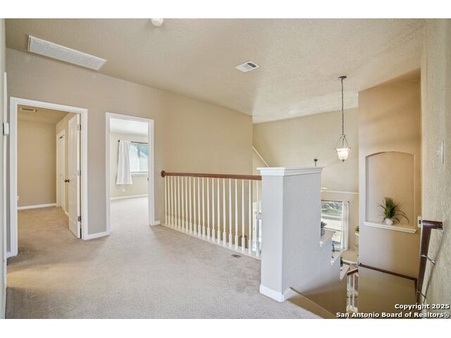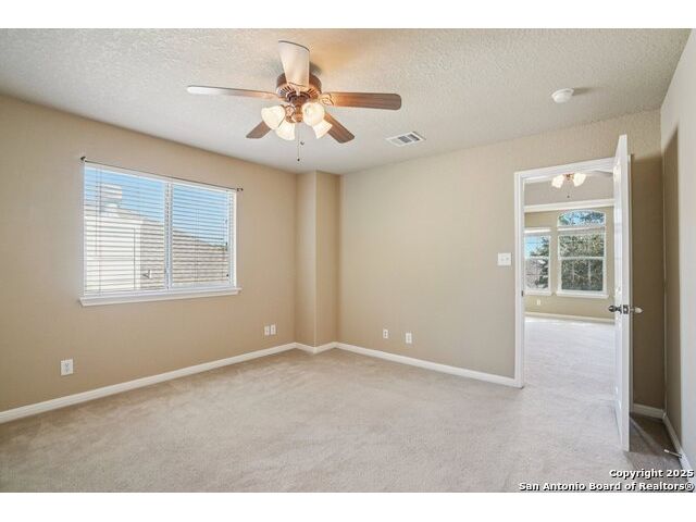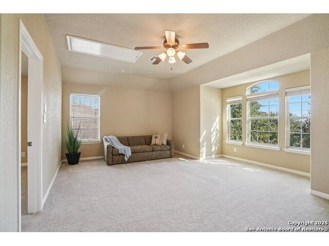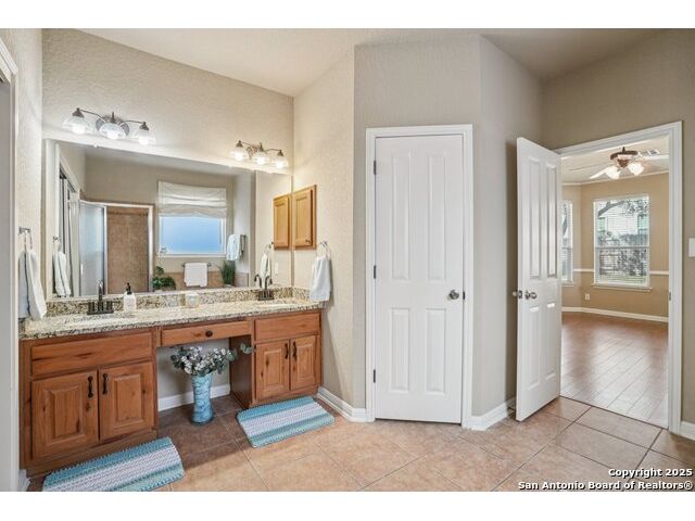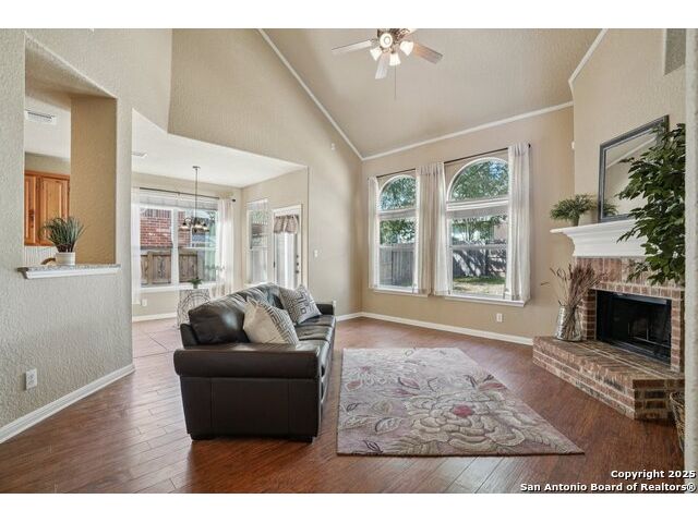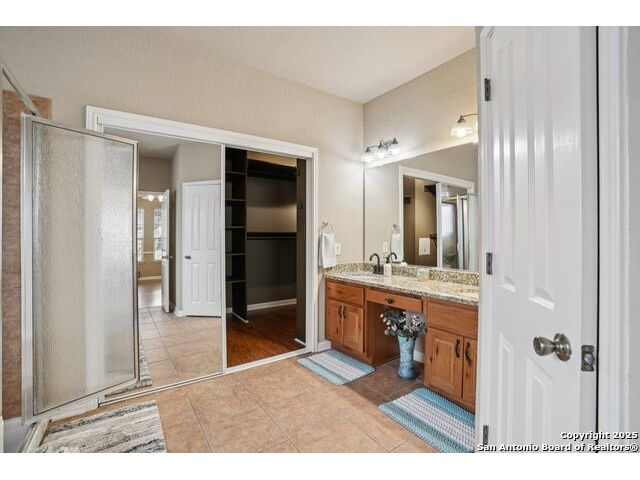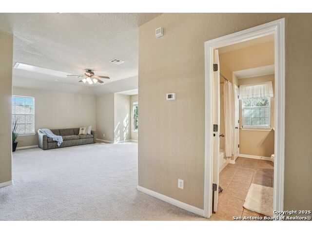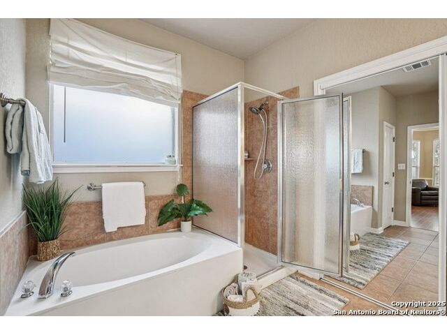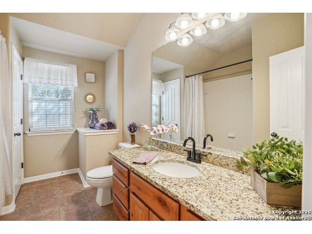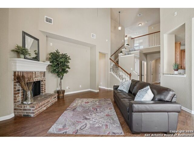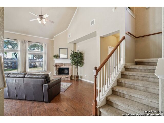 Gorgeous 2-Story Home in Highly Sought-After Jonas Woods, Schertz! Welcome to this stunning two-story home featuring Dining area gourmet kitchen complete with granite counters and stainless steel appliances. A spacious primary suite downstairs with a beautiful Designer closet setup, double sinks and fabulous soaking tub. Enjoy 4 generous bedrooms, 2.5 baths, and multiple living spaces including a cozy fireplace in the main living area and an upstairs loft and game room-perfect for entertaining or relaxing. Freshly painted throughout, this home also offers a nice-sized backyard with a charming flagstone patio, ideal for outdoor gatherings. Located in the desirable Jonas Woods subdivision, this home combines comfort, space, and style in one exceptional package. New roof on the way. Neighborhood amenities include pool, 2 parks, and walking trails close.