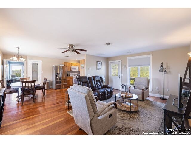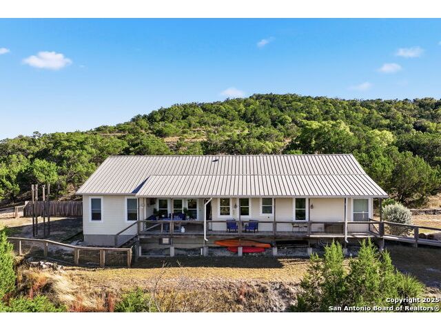 Texas Hill Country Retreat with Guest House and Expansive Views Experience the best of Hill Country living in this custom-built cottage-style home on 8.64 unrestricted acres with panoramic views and exceptional privacy. Designed for comfort and versatility, this property includes a guest house, workshop, and 40,000-gallon rainwater harvesting system. The main home (4 bed/2.5 bath 2735 SqFt) features hardwood floors, custom millwork, durable Hardie board siding, and a chef's kitchen with granite countertops, stainless steel appliances, and generous workspace - ideal for entertaining. Spacious bedrooms with large closets and abundant natural light make every room inviting. The guest house with 1-car garage (2 bed/2 bath 1,160 SqFt) clean, classic finishes and a full kitchen, perfect for family, guests or long-term rental income. With unrestricted land zoned for horses, this property offers endless possibilities - a private Hill Country haven blending luxury, functionality, and authentic Texas charm.