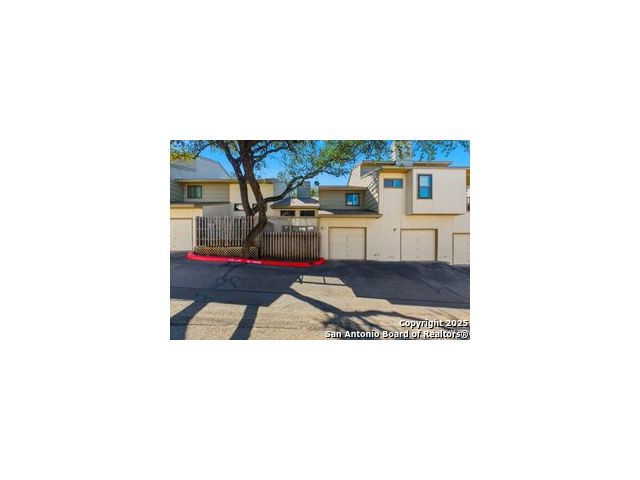 Discover this spacious, 1109 square foot, 2-bedroom, 2.5-bath condo featuring a ground-floor master with en-suite bath and an upstairs bedroom with private bath. Enjoy cozy evenings by the fireplace, entertain with ease at the wet bar, or unwind on your private deck. The attached 1-car garage adds everyday convenience. Set within a beautifully maintained community shaded by mature oak trees, this home offers access to a charming pool area just steps from your front door. Recent upgrades include a newer HVAC system (2024) and water heater (2025). Washer, dryer and refrigerator are included. Thoughtfully priced to inspire your sense of style, this inviting residence is the perfect canvas for your decorating touch.