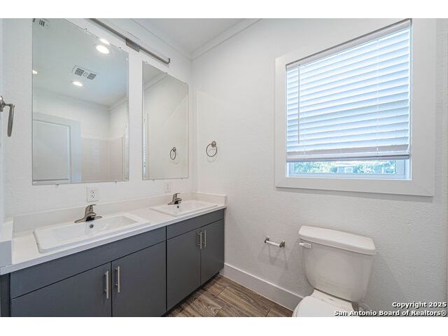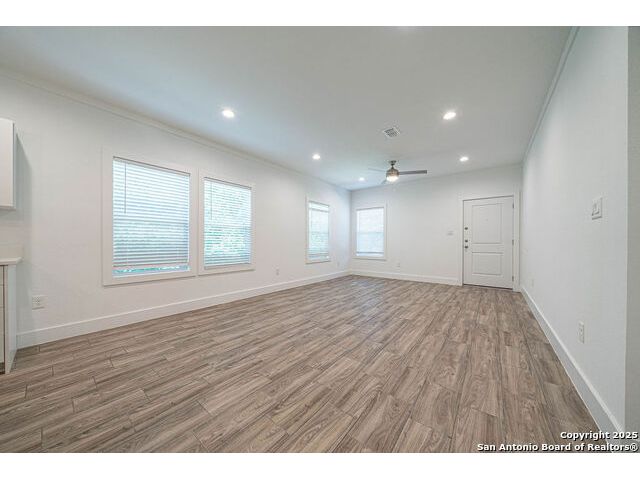 Built in 2024, this modern single-story home blends contemporary design with practical comfort. The open layout connects the living, dining, and kitchen areas, creating an inviting space for daily living or entertaining. The kitchen is equipped with quartz countertops, stainless steel appliances, and sleek cabinetry, offering both function and style. The home includes 3 bedrooms and 2 full bathrooms, featuring a spacious primary suite with a walk-in closet and private bath. Durable flooring runs throughout, complementing the home's clean, modern aesthetic. Energy-efficient systems and a manageable yard make this property ideal for low-maintenance living. Situated in the Jefferson Heights neighborhood, you'll be minutes from the Alamodome, Pearl District, downtown, and the River Walk, with easy access to I-37 and Highway 281. A great opportunity for those looking for new construction close to the heart of San Antonio's most dynamic districts.