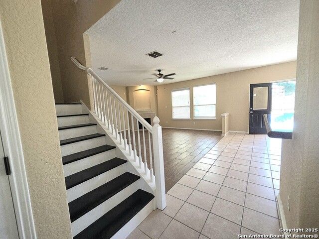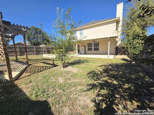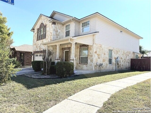 Looking for your dream home. Come view this beautiful corner lot house located in the Alamo Ranch Community. House features 4 bedrooms, 2.5 baths, large game room/loft, ceiling fans in all bedrooms, plenty of windows for natural lighting, ceramic tile and laminate flooring throughout. Outdoors enjoy the backyard pergola, privacy fence and the oversize cover patio for relaxation, BBQ's or family gatherings. Inside, the first level delight in the open floor concept, spacious living room with gas fireplace, large kitchen and bar top, separate dining room, eat-in kitchen with granite counters and plenty of cabinet space. The second level features all bedrooms upstairs to include the game room/loft. Primary bedroom is spacious, with vaulted ceilings and en suite bath includes double vanities, garden tub, separate shower and 2 walk-in closets. THE HVAC WAS REPLACED OCTOBER 14, 2025 FOR PEACE OF MIND AND COMES WITH A 10 YEAR WARRANTY ON PARTS AND 1 YEAR WARRANTY ON LABOR. NEW SURVEY WAS DONE IN 2025. Washer, Dryer, Microwave and Refrigerator Convey. Great location close to schools, shopping, eateries, gas stations, highway 151 and 1604. Don't miss out. Schedule your showing today!! ALL ROOMS MEASUREMENTS ARE APPROXIMATE. MOTIVATED SELLER.