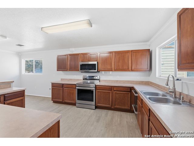 THIS IS THE ONE! With all new floors, paint, and fixtures, (October 2025) This home features two huge living rooms, perfect for formal gatherings in one and cozy time in the other, alongside very spacious bedrooms offering ample room for rest, work or play. The kitchen is a dream for those who cook or entertain-lots of cabinet and counter space, ideal for cooking, serving or simply staging your favorite appliances. Step outside into a large backyard offering privacy and room to roam, set up outdoor entertaining or pets play freely. Beyond the walls you'll love the location: you're minutes to The Forum at Olympia Parkway in nearby Selma for shopping, dining and entertainment. For military, the home's location offers access to Joint Base San Antonio (JBSA) installations including Randolph Air Force Base and Fort Sam Houston, all within about a 30-minute commute. Don't miss the opportunity to make this spacious, well-appointed home your own. It blends everyday comfort, entertaining space and location with ease.