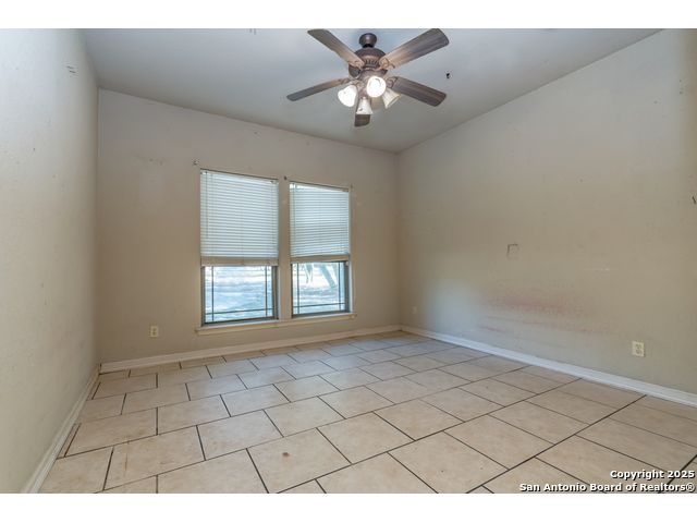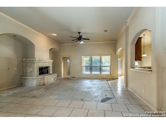 Wonderful potential in this property. Primary is split with two bedrooms on the opposite end of master and an ensuite bedroom/bath separated to the rear. The open living and kitchen areas have high ceilings and feature a floor to ceiling stone fireplace. Kitchen has quality alderwood cabinets. A separate study could service many purposes. All of this on over half an acre lot and just a few blocks from main street. A great opportunity to have a "hill country" house to finish out to suite you.