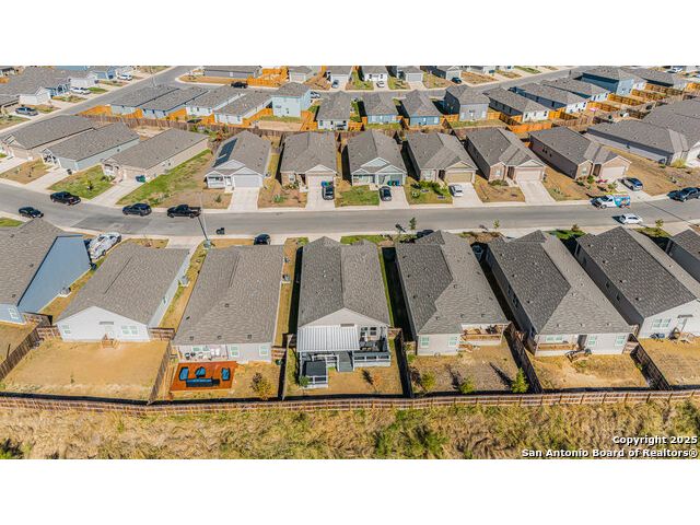 A step above new construction and entertainers dream with new 82-jet jacuzzi! Move-in-ready home in the golf course community of Mission Del Lago with over $50K in warrantied upgrades! This single-story offers 4 bedrooms, 2 baths, and a 2-car garage with EV plug. The open layout connects the living, dining, and kitchen areas with updated quartz countertops and backsplash, custom coffee bar, upgraded sink and faucet, and a refrigerator that conveys. The dining area features a custom buffet with quartz counters and USB outlets, and the living room includes duel ceiling fans. The owners suite includes extra cabinetry and an updated showerhead in the bathroom, while the secondary bedrooms offer new carpeting and a front bedroom/office space with vinyl flooring. Step outside to a spacious composite deck with cover and built-in bar, overlooking a serene greenbelt with access to the Mitchell Lake Greenway Trail. Enjoy the brand new (8/2025) 82-jet hot tub for year-round relaxation. This home is truly move-in ready, conveniently located near Mission Del Lago Golf Course, schools, shopping, and major highways.
