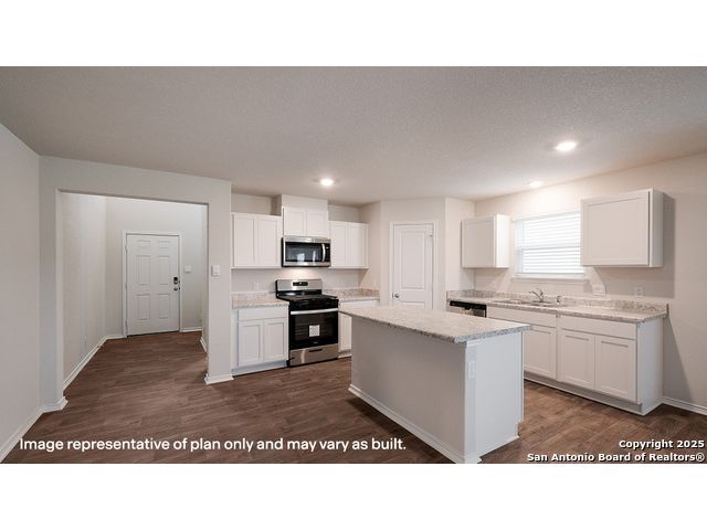 The Stanley is a two-story home featured in our Redbird Ranch community in San Antonio, TX. Offering 3 classic front exteriors, 1-car garage and full yard landscaping and irrigation, this home is sure to impress. Step inside this 4 bedroom, 2.5 bathroom home to find 2243 square feet of open concept living. Whether you're cooking, enjoying a meal or entertaining, you'll never be far from the action with a beautifully blended kitchen, dining area and living room. With quartz counter tops, stainless steel appliances and shaker style cabinetry, this home's kitchen was designed with you in mind. You'll also love a roomy, single basin sink, a spacious corner pantry and an oversized kitchen island with plenty of workspace. A versatile, open to below loft greets you at the top of the stairs and is a perfect play room or entertainment area. Quality carpet and large windows that provide natural light make this a well-rounded space. The primary bedroom is located upstairs and is built with an attractive ensuite bathroom. The main bathroom features a quartz vanity countertop, a combined shower and bathtub and a grand walk-in closet with built-in shelving. A second full bathroom and all secondary bedrooms are also located upstairs. Whether you are using these rooms as bedrooms or other bonus spaces, all include quality carpet and closets. Additional features include sheet vinyl flooring in entry, living room, and all wet areas, quartz bathroom counter tops and our HOME IS CONNECTED base package. Using one central hub that talks to all the devices in your home, you can control the lights, thermostat and locks, all from your cellular device.