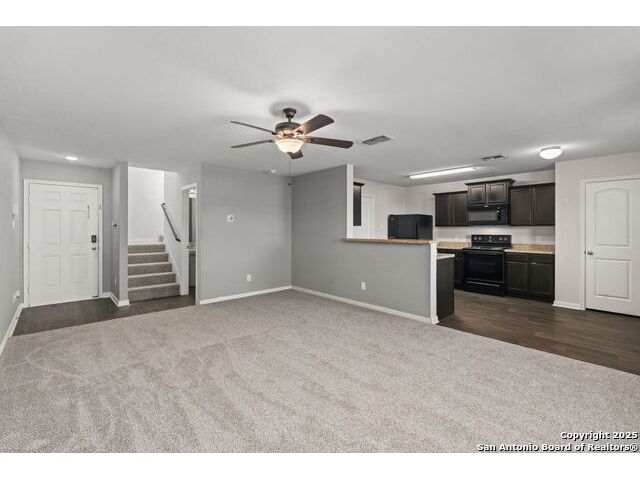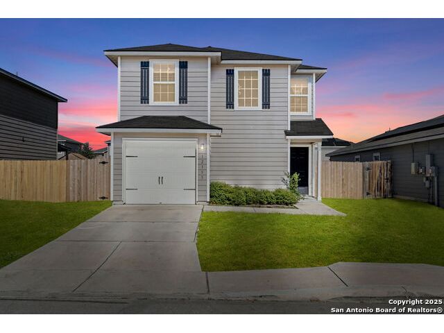 Charming two-story home built in 2018 with 3 bedrooms, 2.5 baths, and 1,290 sq ft. The open floor plan features a spacious living area, recent carpet, and wood-look flooring in the kitchen and baths. The kitchen offers abundant cabinet and counter space, dark cabinetry, and matching appliances with walk-in pantry. All bedrooms are upstairs, including a comfortable primary suite with walk-in closet. Enjoy a large fenced backyard, one-car garage and conveniently located to Lackland AFB and major shopping.