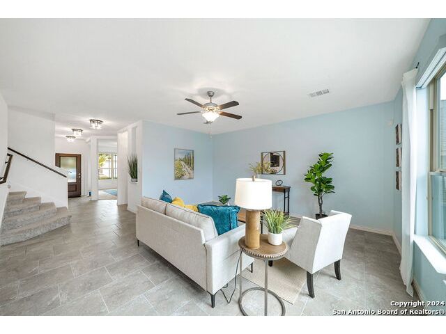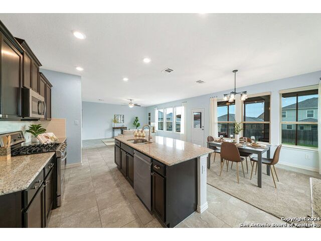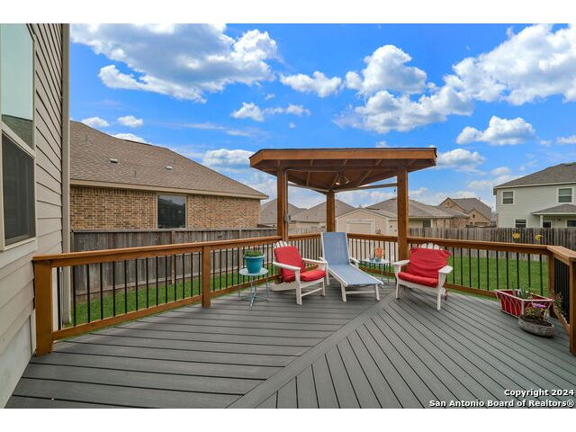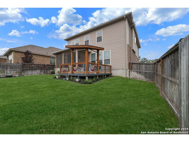 PRICED TO SELL ~~ FABULOUS DEAL! ~~ SELLER TO PAY BUYER'S CLOSING COSTS. ~~ Like-new 2-story home in highly desired Ladera North Ridge neighborhood. This 4-bedroom, 2.5-bath, 2,587 sq. ft. residence offers luxury, comfort, and thoughtful design. The open-concept living area features tall ceilings and stylish tile flooring. The gourmet kitchen includes an upgraded granite island and countertops, subway tile backsplash, ample cabinet and drawer space, stainless steel appliances (gas stove/oven, microwave, dishwasher, double sinks), and a walk-in pantry with automatic lighting. ~~ All bedrooms are upstairs along with a large game room. The spacious primary suite features a spa-like bath with garden soaking tub, walk-in shower, double vanities, and large walk-in closet with custom shelving, chandelier, and automatic lighting. Secondary bedrooms are generous in size. Convenient upstairs laundry room and full hall bath. Upgrades include motorized custom window shades (in dining, family, breakfast, game, and primary rooms), newly cleaned neutral carpet, tankless water heater, whole-house water filtration and softener system (owned), and UV air cleaning system installed in HVAC ductwork. Enjoy outdoor living with a custom screened-in porch/sunroom featuring a ceiling fan and shades, plus a freshly stained 16x12 deck with lighting and sun shades. Exterior features include an 8x8 storage shed, a two-car garage with epoxy flooring and built-in storage, a manicured lawn, native plants, a tree, and underground sprinklers. ~~Excellent location near Hwy 211 and Loop 1604, close to shopping, dining, and entertainment. Move-in ready and loaded with upgrades-why build when you can buy this exceptional home today? Schedule your showing now!