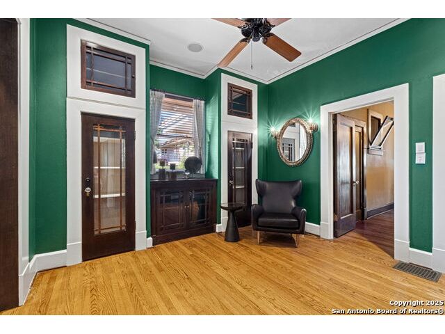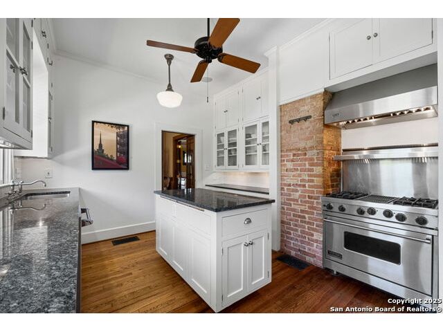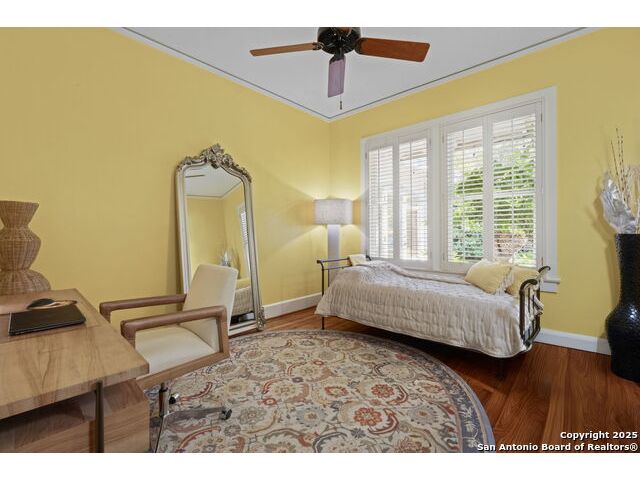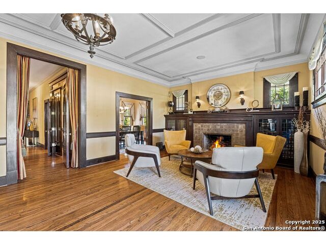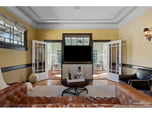 A rare opportunity to own a beautifully preserved historic Craftsman home with Spanish Eclectic influences in the heart of Monte Vista. This exquisite residence combines timeless architectural integrity with refined modern updates, offering an effortless move-in ready experience. Elegant craftsmanship is evident throughout-from the rich wood trim and detailed eaves to the custom built-ins and original Batchelder-tile fireplace anchoring the living room. The thoughtfully renovated chef's kitchen features commercial-grade Viking appliances and tasteful granite finishes that complement the home's period character. The main level offers generous living and dining spaces, three guest bedrooms, a flex room ideal for a study, and two beautifully updated baths that maintain the home's historic charm. The primary suite, occupying the entire second floor, provides a serene retreat with a spacious spa-inspired bath, private balcony, and large custom walk-in closet. A sunny sunroom overlooks the gorgeous backyard oasis, complete with a sparkling pool and water feature, surrounded by lush, mature landscaping that creates a sense of privacy and tranquility. Above the detached two-car garage there is a 483' one-bedroom, one-bath apartment-perfect for guests, extended family, or an office/studio. Every element of this home reflects a harmonious blend of historic character and modern luxury, making it one of Monte Vista's most captivating properties.