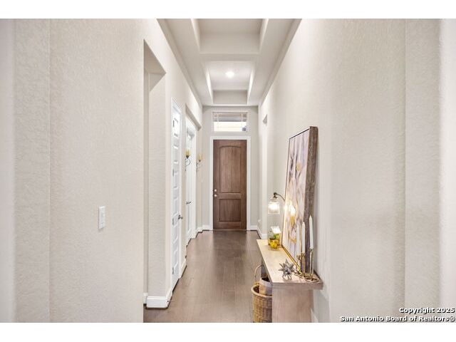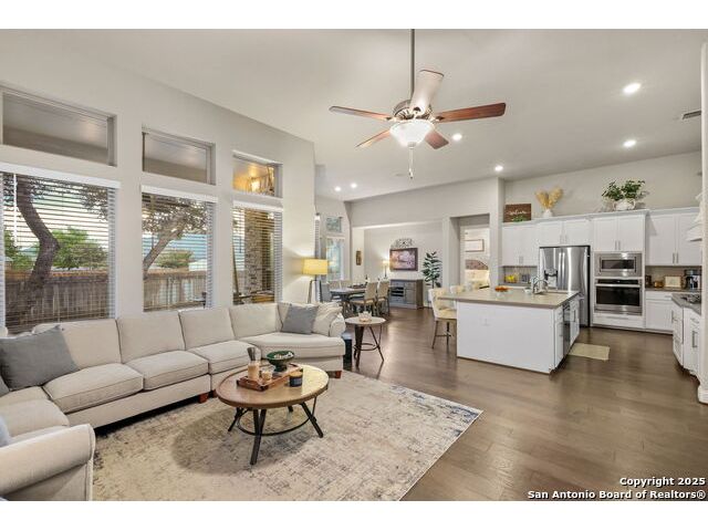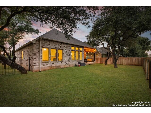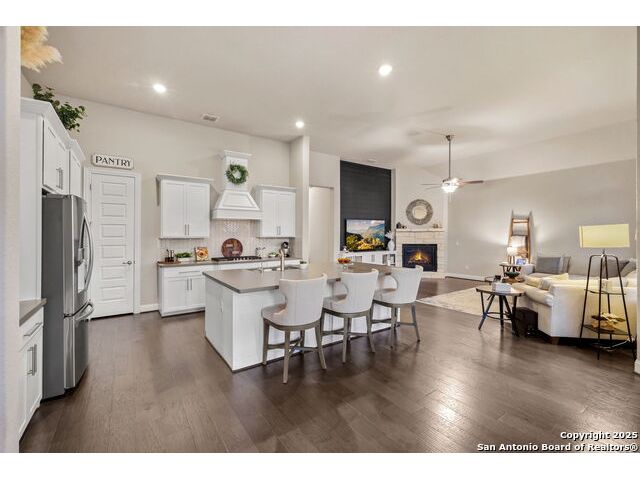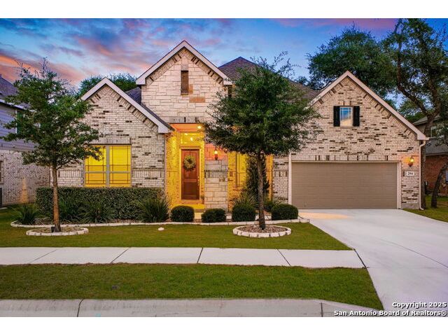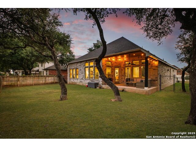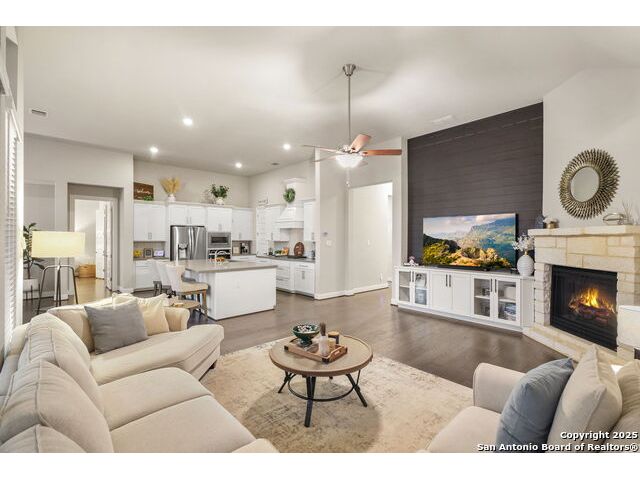 Discover your dream home in this stunning move-in-ready home that perfectly combines modern style with everyday comfort. This one story beauty features great curb appeal, open layout with natural light throughout, tall ceilings and a private study with French doors. The living room is a true highlight, showcasing a modern accent wall, custom shelving unit, and a cozy stone gas fireplace. Gorgeous white kitchen features a grand island, gas stove, glass tile backsplash, stainless steel appliances, pull-out drawers and connects to your spacious dining room ideal for endless entertainment! The primary suite is private, complete with a garden tub, dual vanities, and a large closet with a built-in make-ready mirror. Enjoy relaxing evenings on your covered cozy patio with ambient lighting. Located just minutes from IH-10, Hwy. 46, Boerne High School, parks, shopping, and dining options, this home offers both convenience and comfort. Don't miss this opportunity, schedule your showing today and see everything this amazing home has to offer!