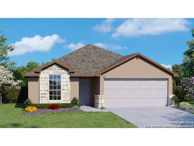 Step into The Brown floor plan at Redbird Ranch in San Antonio, TX, a single-story home featuring 3 bedrooms and 2 bathrooms. The Brown also offers 3 classic front exteriors, a 2-car garage and 1651 square feet of comfortable living. The Brown features classic design and modern features that blend seamlessly to create the perfect everyday space. A welcoming foyer leads to a formal dining room with large windows and a connecting doorway to the galley kitchen. The kitchen includes plenty of cabinet storage, quartz counter tops, subway tile backsplash, stainless steel appliances, and a gas cooking range. A large kitchen island with a deep, single basin sink overlooks the spacious living room. The large first bedroom suite is located off the family room and features a double vanity sink, separate tub and walk-in shower and a private water closet. You'll have all the space you need to get ready in the morning with a large walk-in closet. Spacious secondary bedrooms with large closets and quality carpet flooring, a second full bathroom with plenty of natural light, and a utility room are conveniently located off the living room. Head out the back door and relax on your rear covered patio (per plan) and enjoy full yard landscaping and irrigation. Additional features of The Brown include tall 9-foot ceilings, 2-inch faux wood blinds throughout the home, luxury vinyl plank flooring in the entry, family room, kitchen, and dining area, ceramic tile in the bathrooms and utility room, and pre-plumb for water softener loop. You'll enjoy added security in your new home with our Home is Connected features. Using one central hub that talks to all the devices in your home, you can control the lights, thermostat and locks, all from your cellular device.