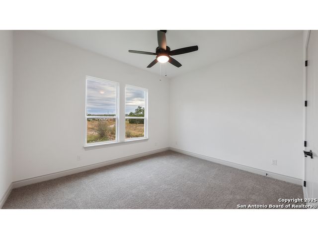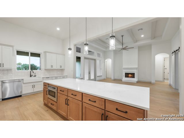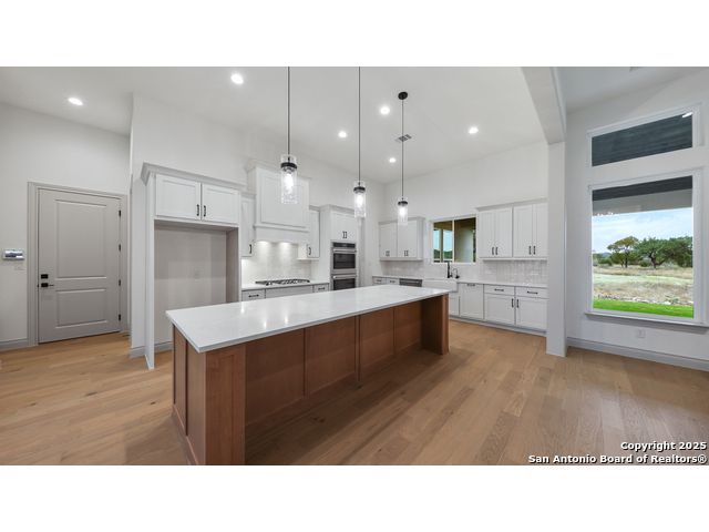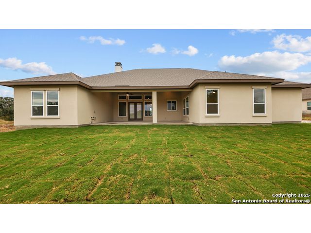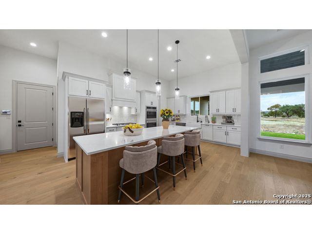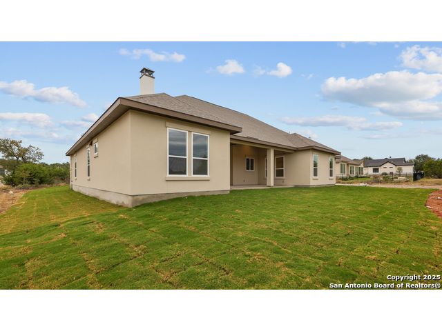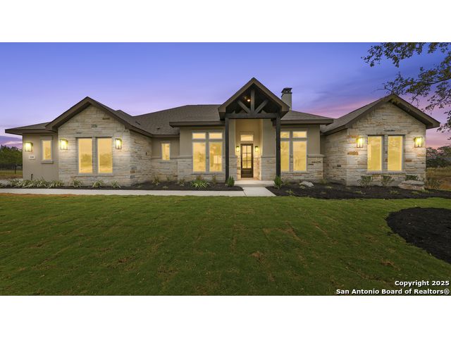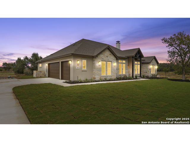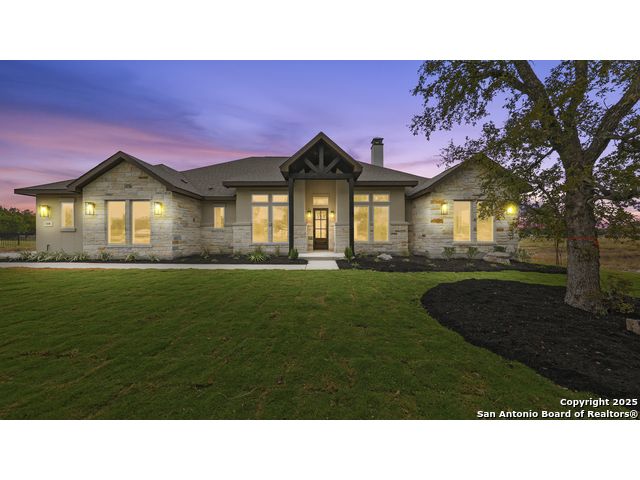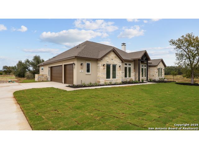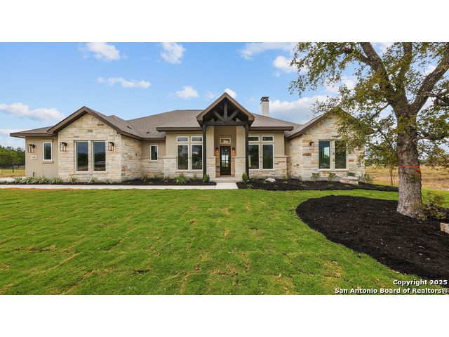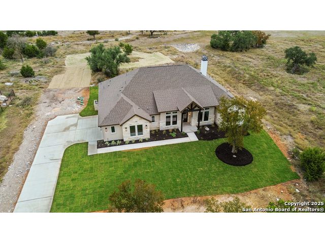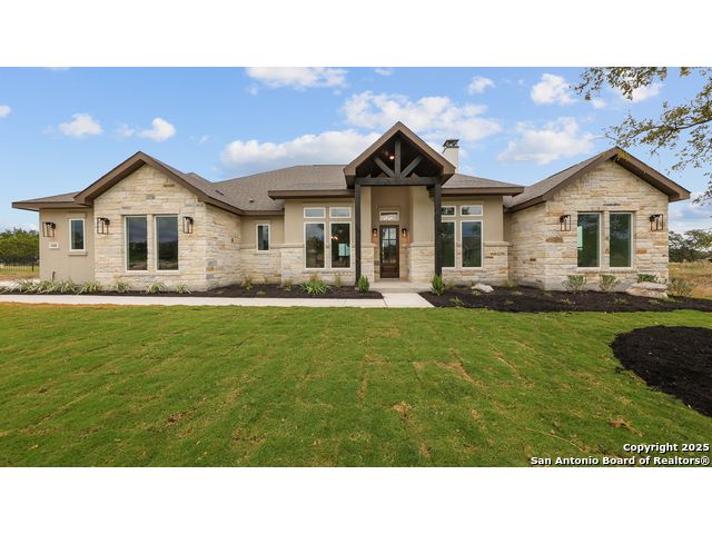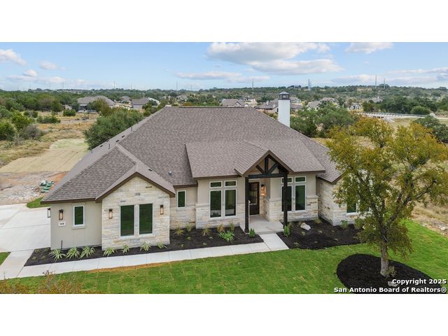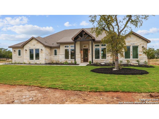Nestled on one acre and steps from scenic walking trails, this brand-new 4-bedroom, 3.5-bath custom home blends modern luxury with the peaceful charm of the Spicewood Trails community. A refined 2,676 sq ft floor plan by JLP Builders, designed for effortless everyday living and elevated entertaining. The heart of the home is the open-concept great room, showcasing architectural beams, a dramatic cast-stone fireplace, and expansive windows that capture natural light and surrounding hill country views. The gourmet kitchen is a true showpiece, featuring quartz countertops, GE Cafe stainless steel appliances, double ovens, a large island, and a walk-in pantry. The private primary suite offers spa-like serenity with a soaking tub, walk-through shower, and generous closet space. A dedicated guest suite and two additional bedrooms provide flexible living options for family, visitors, or a home office. Step outside to the covered patio with tongue and groove ceilings-already pre-plumbed for a future outdoor kitchen-and enjoy peaceful evenings under the Texas sky. From the cedar truss front entry to every thoughtfully selected finish, this home delivers high-end design with lasting craftsmanship. This new construction home also includes a builder-backed, new home warranty.