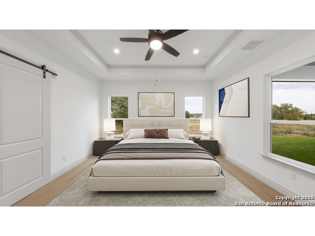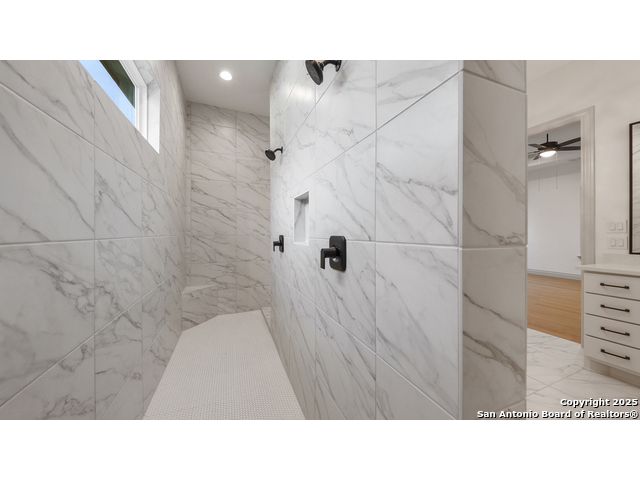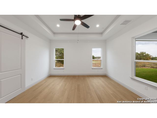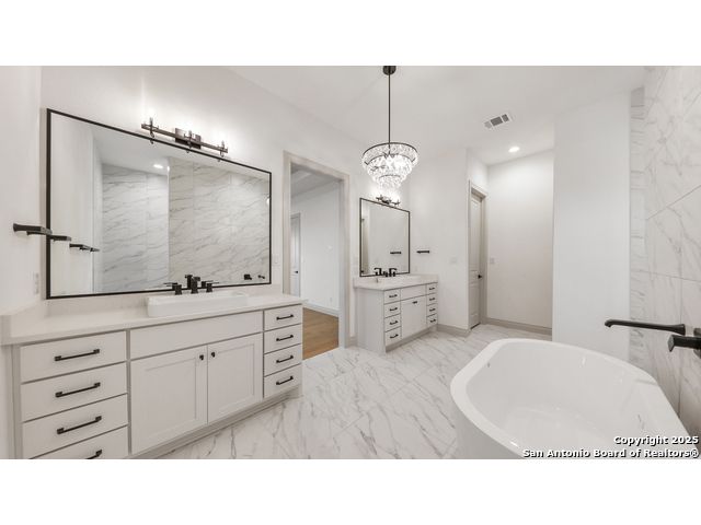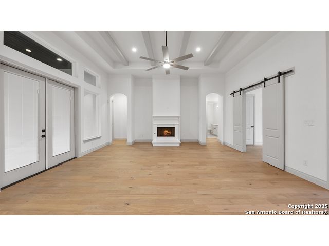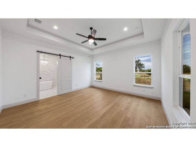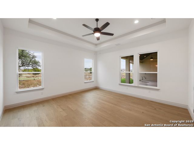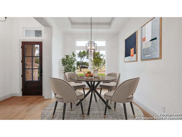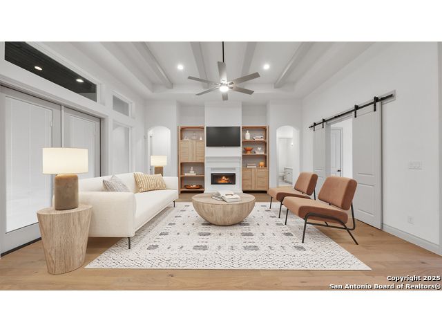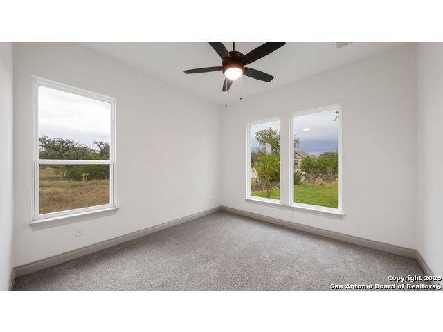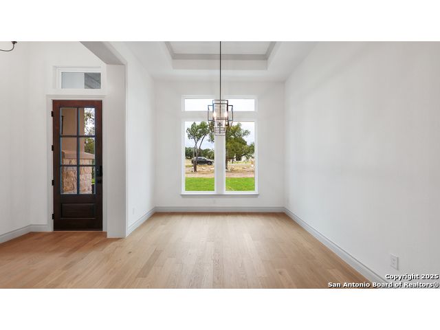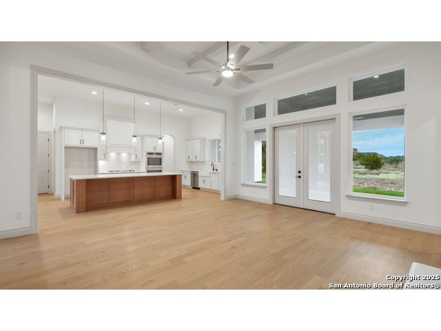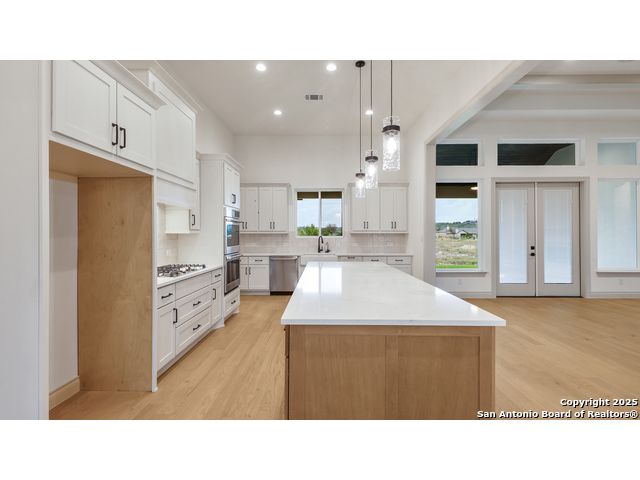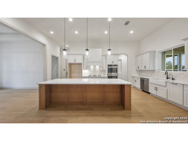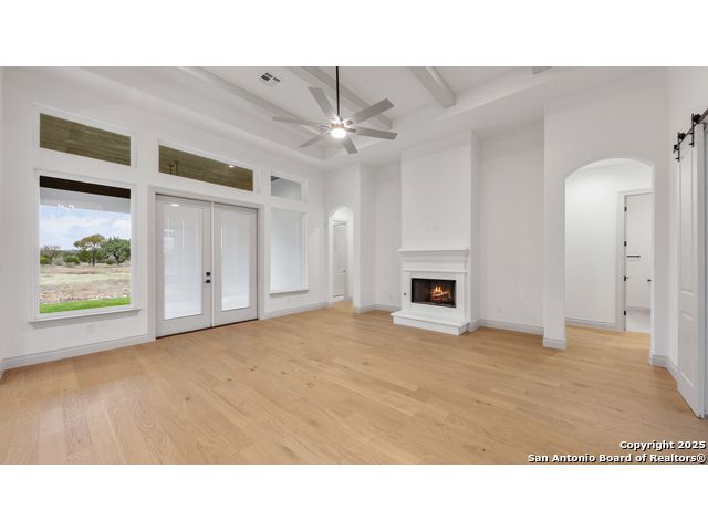 Nestled on one acre and steps from scenic walking trails, this brand-new 4-bedroom, 3.5-bath custom home blends modern luxury with the peaceful charm of the Spicewood Trails community. A refined 2,676 sq ft floor plan by JLP Builders, designed for effortless everyday living and elevated entertaining. The heart of the home is the open-concept great room, showcasing architectural beams, a dramatic cast-stone fireplace, and expansive windows that capture natural light and surrounding hill country views. The gourmet kitchen is a true showpiece, featuring quartz countertops, GE Cafe stainless steel appliances, double ovens, a large island, and a walk-in pantry. The private primary suite offers spa-like serenity with a soaking tub, walk-through shower, and generous closet space. A dedicated guest suite and two additional bedrooms provide flexible living options for family, visitors, or a home office. Step outside to the covered patio with tongue and groove ceilings-already pre-plumbed for a future outdoor kitchen-and enjoy peaceful evenings under the Texas sky. From the cedar truss front entry to every thoughtfully selected finish, this home delivers high-end design with lasting craftsmanship. This new construction home also includes a builder-backed, new home warranty.