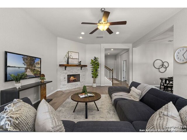 **2.25 RATE ASSUMABLE VA LOAN ** OR ** This house comes with a REDUCED RATE as low as 5.125 (APR 5.45) as of 11/06/2025 through List & LockTM. This is a seller paid rate-buydown that reduces the buyer's interest rate and monthly payment. Terms apply, see disclosures for more information.** This stunning four-bedroom, 2 full bath, 2 half bath, home offers spacious living in the popular Crossvine community. Ideally located on a quiet cul-de-sac and backing to a peaceful greenbelt buffer, it's just a short walk to an abundance of neighborhood amenities. The main level features a large living area with a cozy fireplace and custom mantel, formal dining, and a bright kitchen with white finishes, abundant cabinetry, and space for casual dining. The expansive primary suite includes a generous en-suite bath and walk-in closet, while the secondary bedrooms and office provide flexibility for any lifestyle. Upstairs, a versatile loft serves perfectly as a media, game room, or second living space. Better than new, this well cared for home shines with thoughtful updates and a private backyard oasis featuring a heated Keith Zars pool, covered porch, and outdoor speakers, perfect for year-round entertaining. Close proximity to major highways, shopping, restaurants, and minutes to Randolph military installation. Combining comfort, function, and a prime location, it's ideal for modern Texas living.