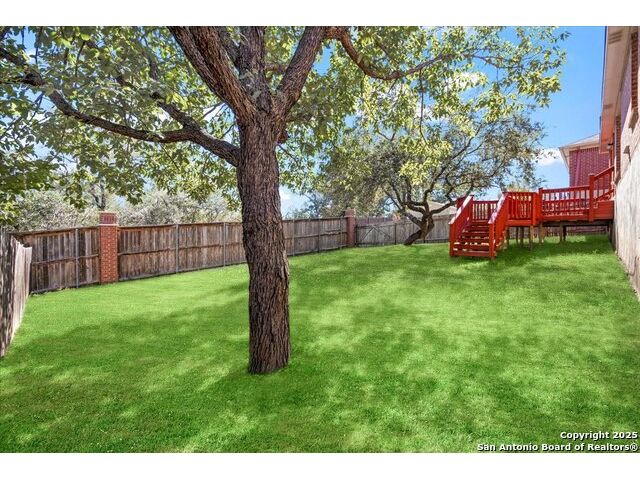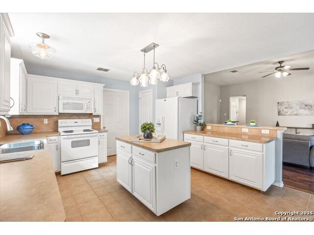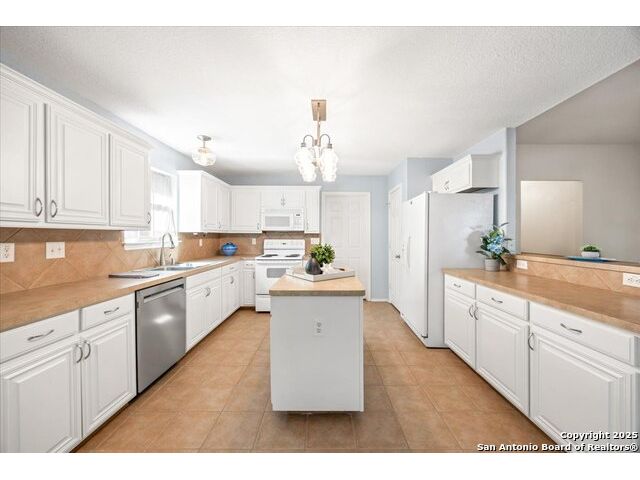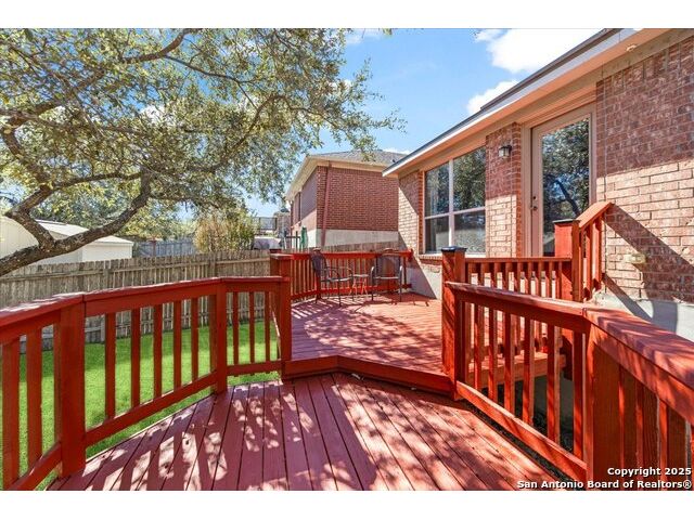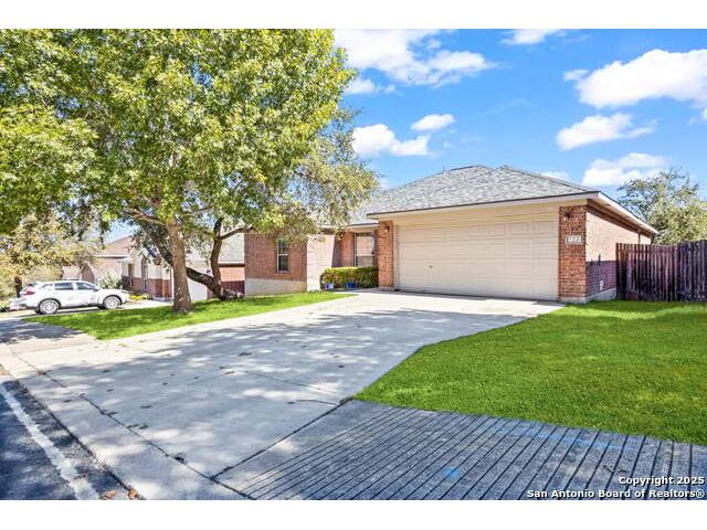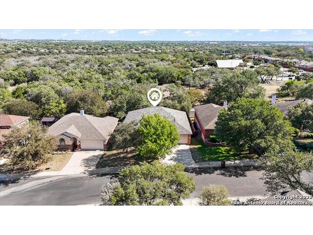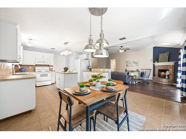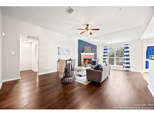 Move-In Ready One-Story Backing to a Greenbelt! Tucked away on a quiet cul-de-sac, this beautifully maintained one-story home offers privacy and comfort with no rear neighbors. The home backs up to a greenbelt and features a private gate providing access to the HOA amenities, including trails that lead to the dog park, pool, and walking paths. Recent updates provide peace of mind, including a roof and HVAC replaced in 2021, a water heater in 2024, and a water softener in 2025. Step inside to find an open floor plan with newly installed wood floors in the main living areas and a cozy wood-burning fireplace as the focal point. The kitchen features freshly painted white cabinetry, a new brushed nickel faucet, and a dishwasher installed in 2022. The flexible layout includes a 4th bedroom that can easily serve as a home office, accessible from both French doors off the hallway and a standard bedroom door near a full bath. The spacious primary suite offers a peaceful retreat with dual vanities, a separate tub, and a walk-in shower. Enjoy the perfect combination of privacy and convenience-close to JBSA-Lackland, SeaWorld, shopping, and major highways (1604, 151, and 90).