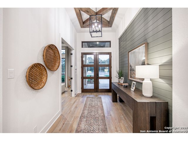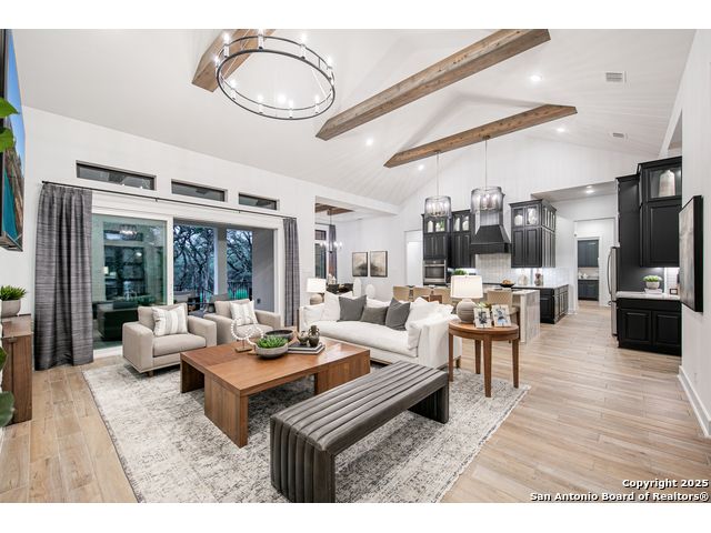 Move in Ready! Beautiful one story 3239 sq. ft. home with 4 bedrooms, 3 1/2 baths, study, game room and a 3-car garage on a 1/2-acre lot all nestled in a beautiful, wooded neighborhood right outside of Garden Ridge, TX. Walk in through the beautiful double front doors into this open floor plan with a fabulous kitchen with an oversized kitchen island with omega stone countertops with apron sides and Silgranit Diamond super single white bowl sink. The kitchen also features stacked cabinets with glass inserts and puck lighting. Enjoy cooking on your cafe 6 burner cooktop and an added pot filler. This home stands out with wooden shutters across the front featuring 4.5" louvers and clear line hidden tilt function. The large family room features suspended cedar beams, oversized sliding glass doors and a 60" Allusion Platinum fireplace. Enjoy your spacious outdoor living with 42" gas fireplace.
