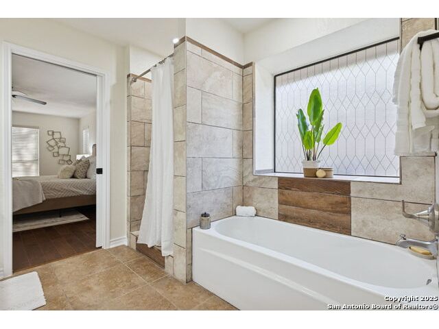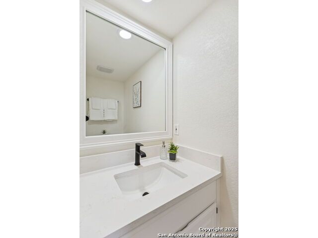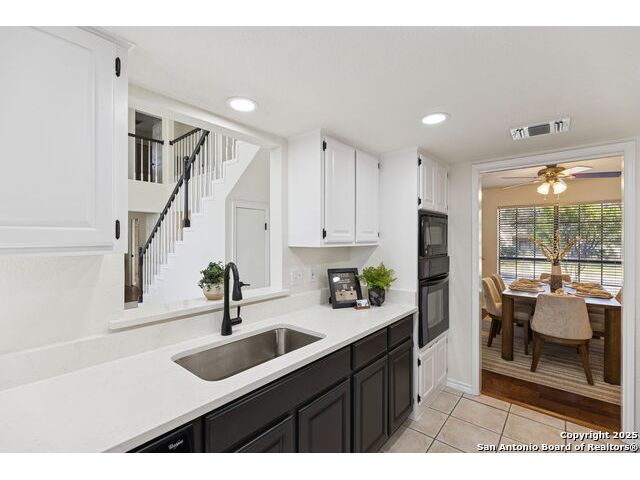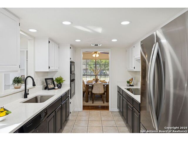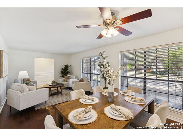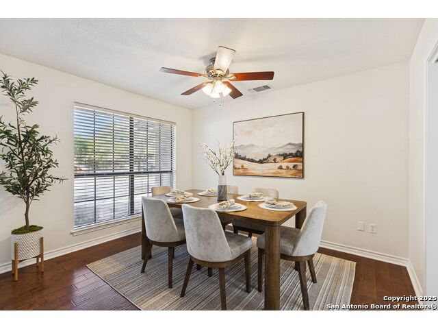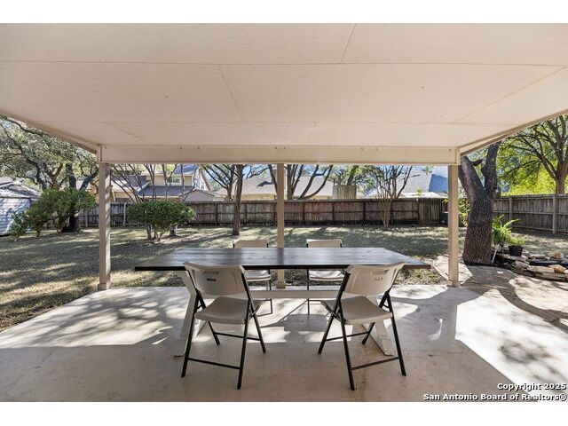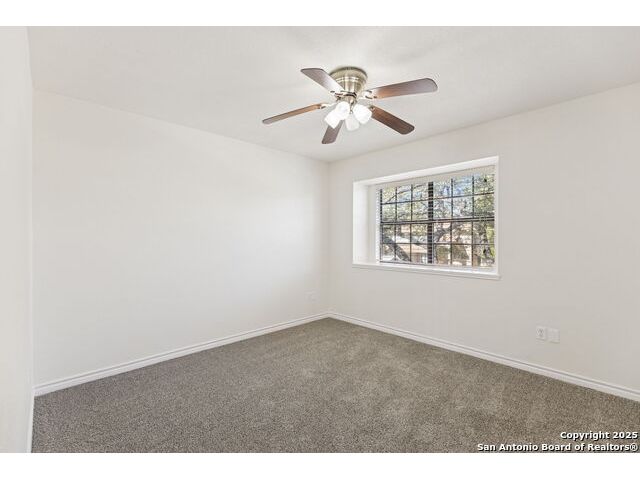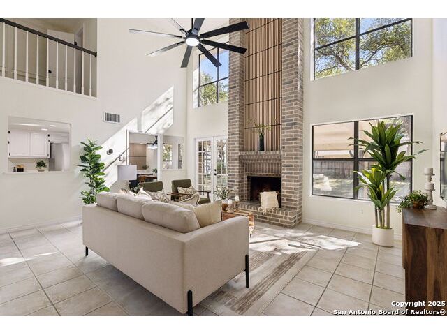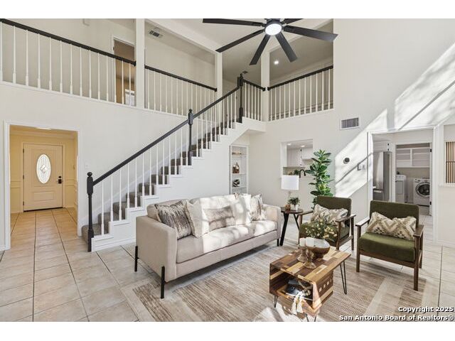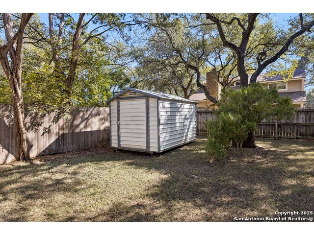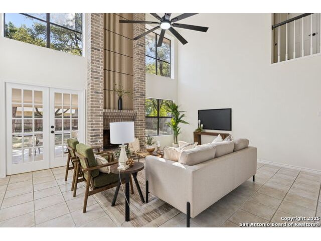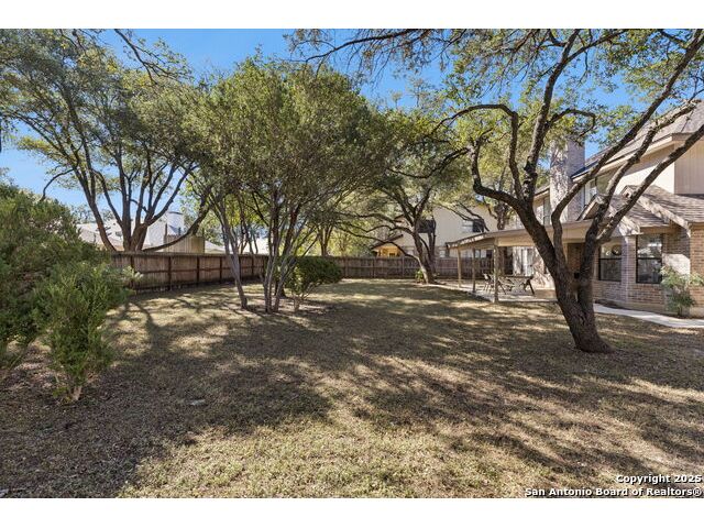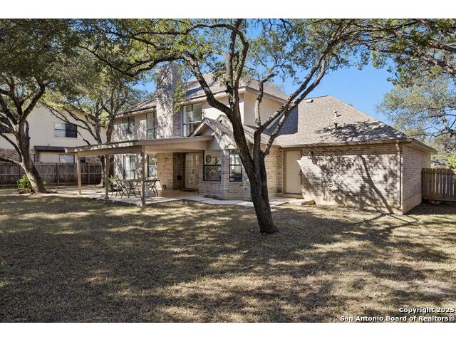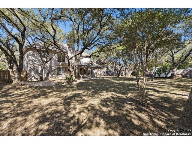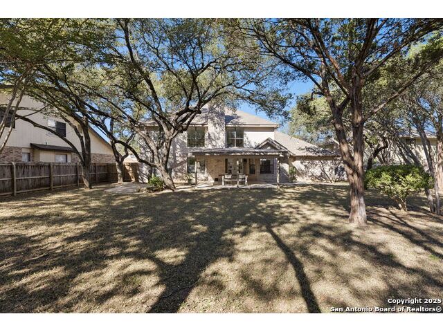 Rare opportunity inside the loop of 1604! This beautifully renovated home in the heart of Woods of Shavano is truly move-in ready and filled with a balance of charm and modern updates. From the moment you arrive, you'll be drawn to the stately curb appeal, mature trees, professional landscaping, and the peaceful cul-de-sac setting. Inside, soaring ceilings, gleaming wood and tile floors, and fresh paint set a warm, inviting tone throughout. The dramatic family room features a floor-to-ceiling brick fireplace with gas starter, accented by a sleek slat-wall design, while the adjacent kitchen shines with quartz countertops, a deep sink, freshly painted cabinetry, and ample storage. The front of the home offers flexible formal living and dining spaces perfect for entertaining or a home office setup. The spacious owner's suite is conveniently located on the main level and features a completely updated bath with double vanity, soaking tub, walk-in shower, and generous closet. Upstairs, new plush carpet complements three additional bedrooms, a remodeled full bath, and a cozy nook ideal for reading, gaming, or extra storage. Step outside to a large covered patio overlooking a flat, private backyard shaded by mature trees-ideal for relaxing or entertaining. Even the garage has been freshly painted and provides additional storage. Every inch of this home has been thoughtfully refreshed and maintained, combining comfort, style, and convenience in one perfect package. Schedule your private showing today and see why this one stands out in Woods of Shavano!