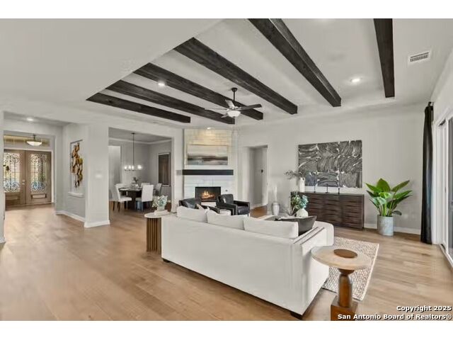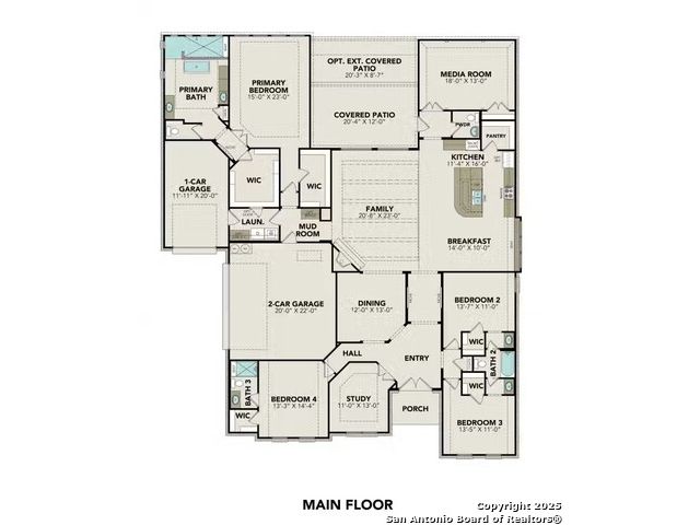 Welcome to the Summerlin, a beautiful one-story sprawling home. The covered front porch and fabulous foyer flow into the spacious family room with views of the covered outdoor living beyond. The stately kitchen is complete with oversized island, plenty of cabinet storage, and large walk-in pantry. Situated just past the kitchen is a roomy media room. The stunning primary suite features two large walk-in closets and a luxurious bathroom with separate vanities, expanded counter space, oversized soaking tub, large walk-in shower, and private water closet. Secondary bedrooms feature walk-in closets, two with a shared full bathroom and one with a private bath, which is perfect for a mother-in-law suite. Make it your own with The Summerlin's flexible floor plan. Just know that offerings vary by location.